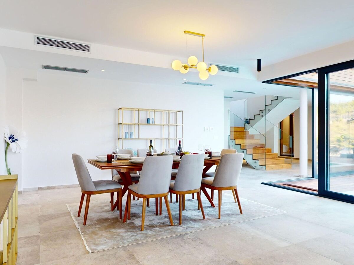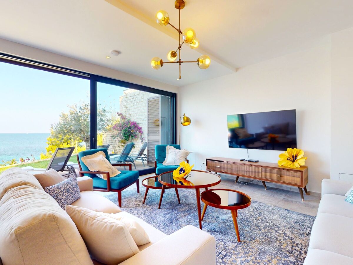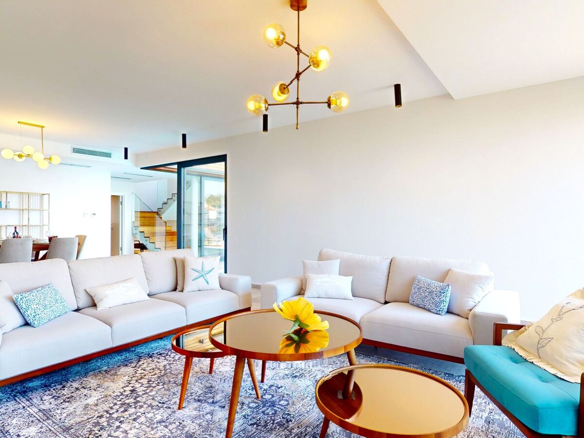 The living spaces are designed for relaxation and socialization, complemented by the convenience of air conditioning and underfloor heating throughout.