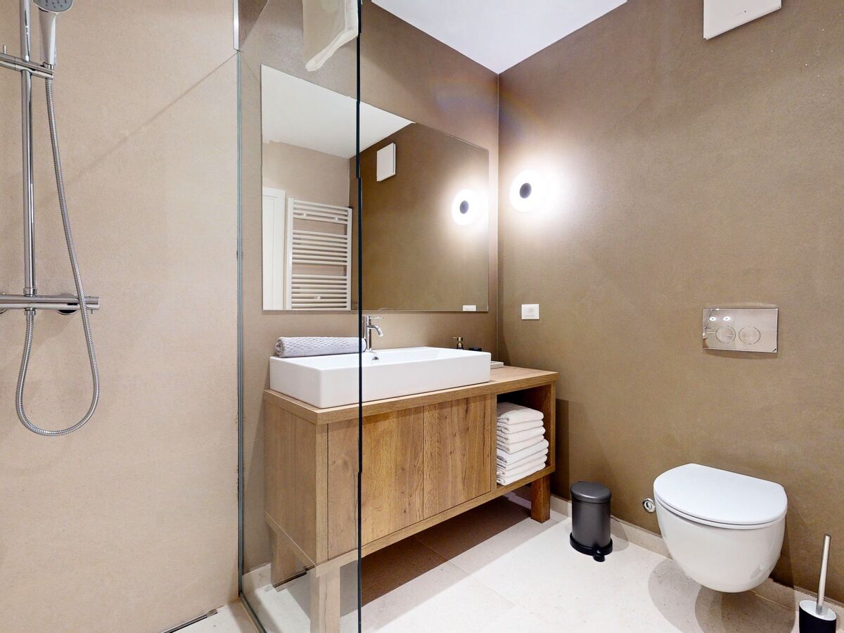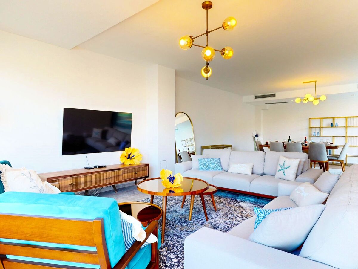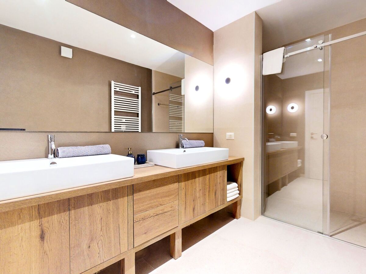 The living spaces are designed for relaxation and socialization, complemented by the convenience of air conditioning and underfloor heating throughout.