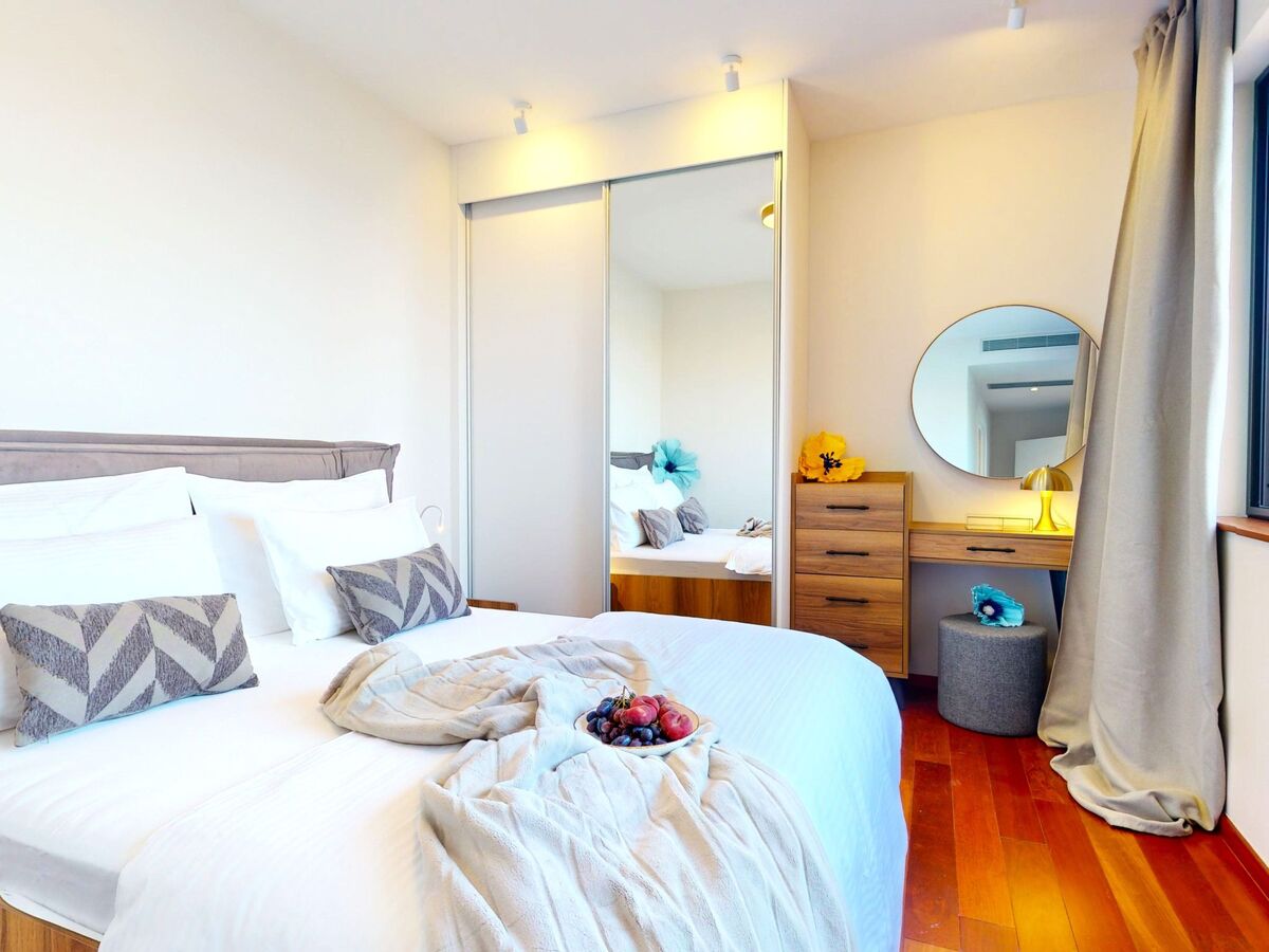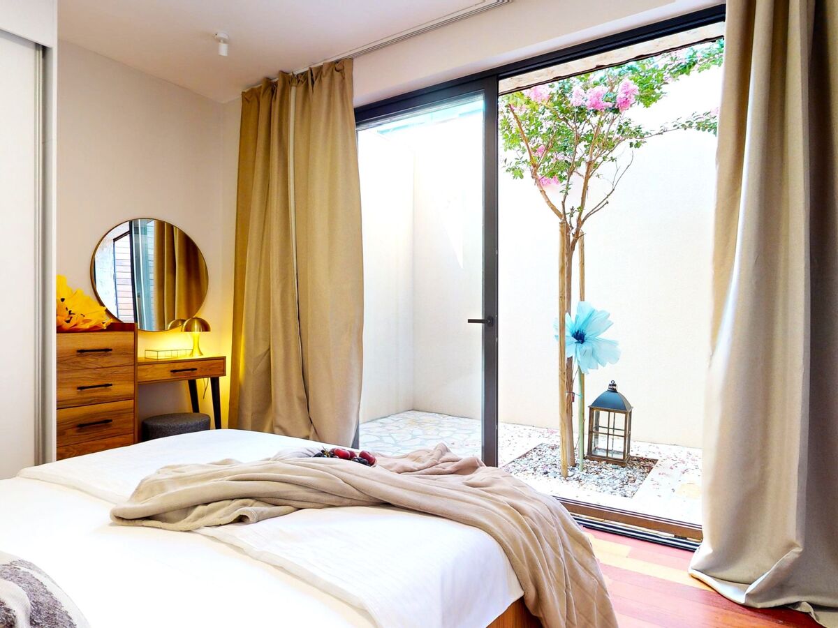 Practical amenities like a washing machine and clothes dryer, exclusive for guests’ use, add to the ease of living.