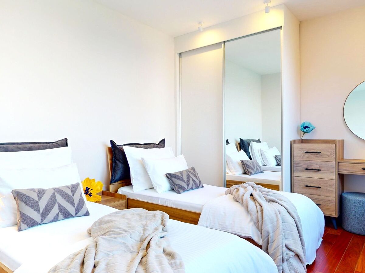 The kitchen is equipped with essential appliances, including a dishwasher, coffee machine, and electric kettle, catering to all your culinary needs.
