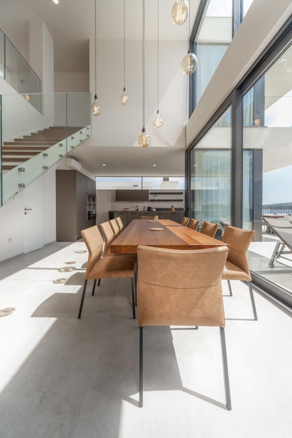 The interior captures the crisp beauty of the Mediterranean, with its open-concept layout, its fresh neutral colours, and large windows welcoming in the generous summer sun.