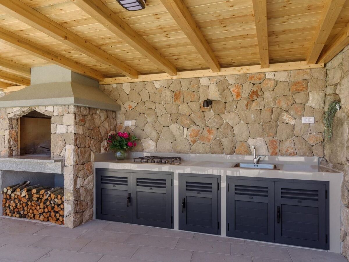For the hot summer days, there is an outdoor kitchen and a stone house with a fireplace for cooking outside.