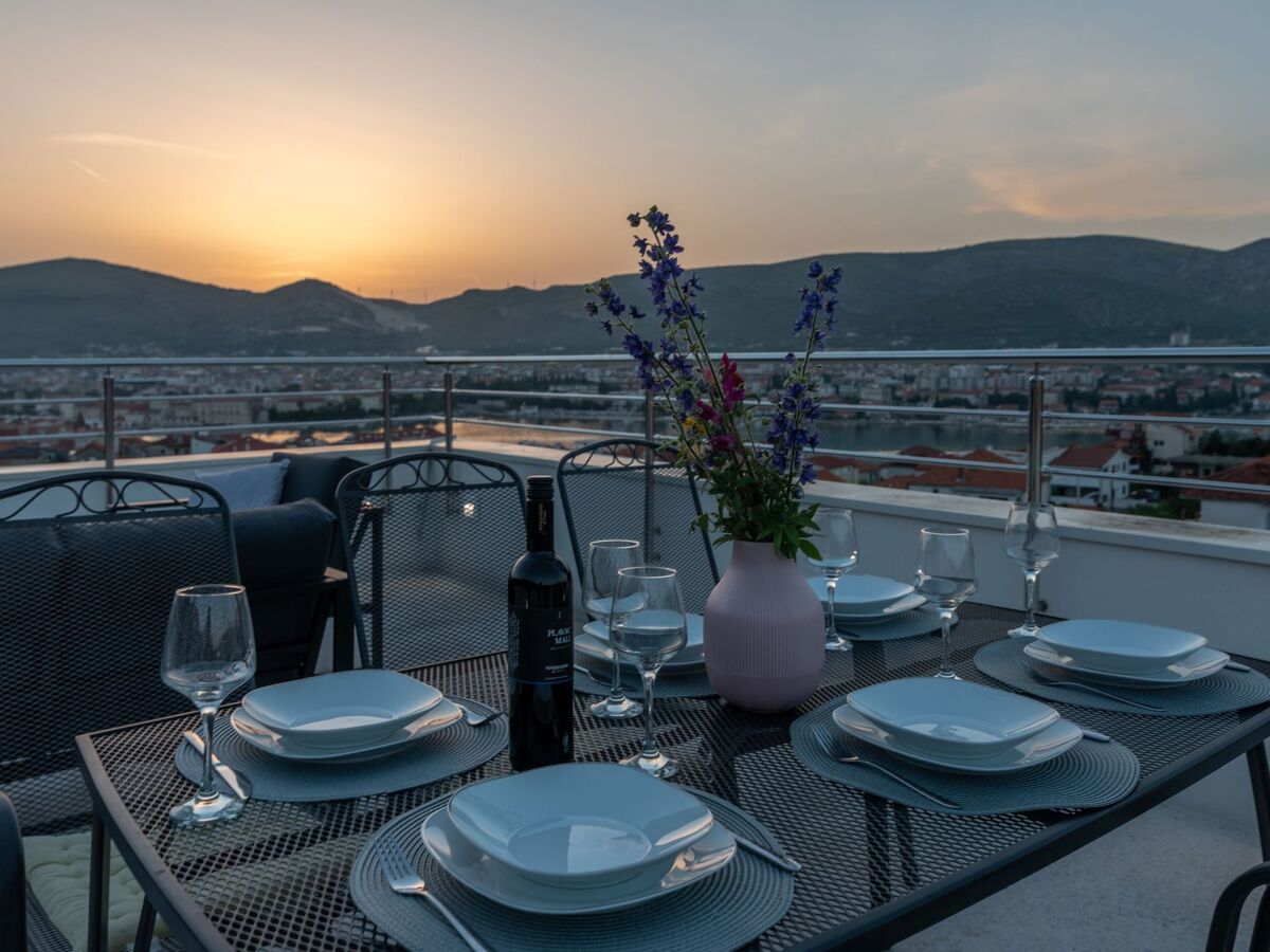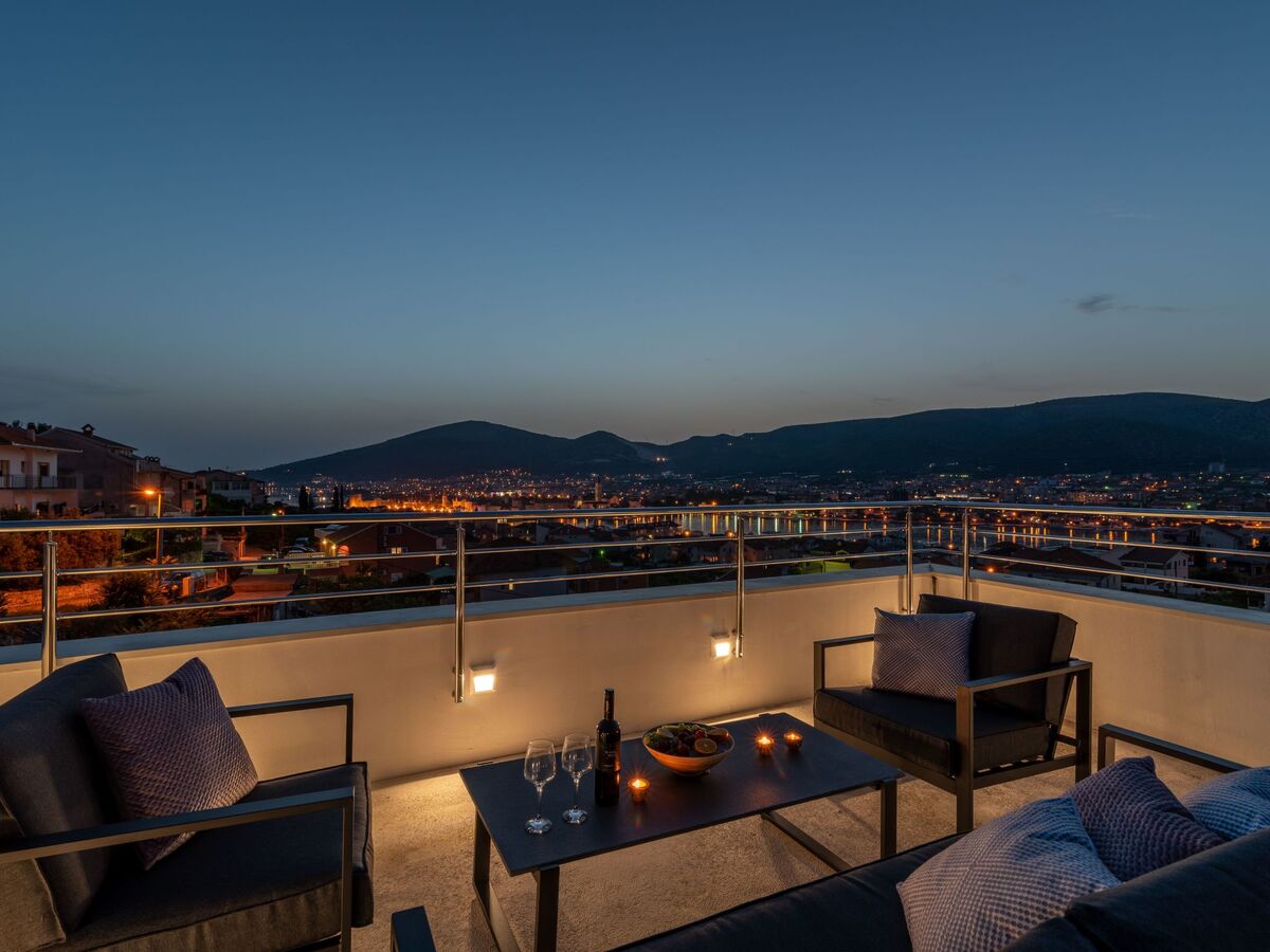 Outside, the villa’s allure continues with a rooftop terrace presenting a spectacular vantage point over the sea and Trogir’s old town.