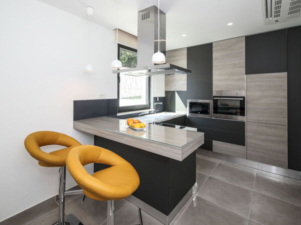 The ground floor has access to a spacious terrace surrounding the pool (30 m2 with lights) with garden furniture, sun lounger and barbecue with large dining table.