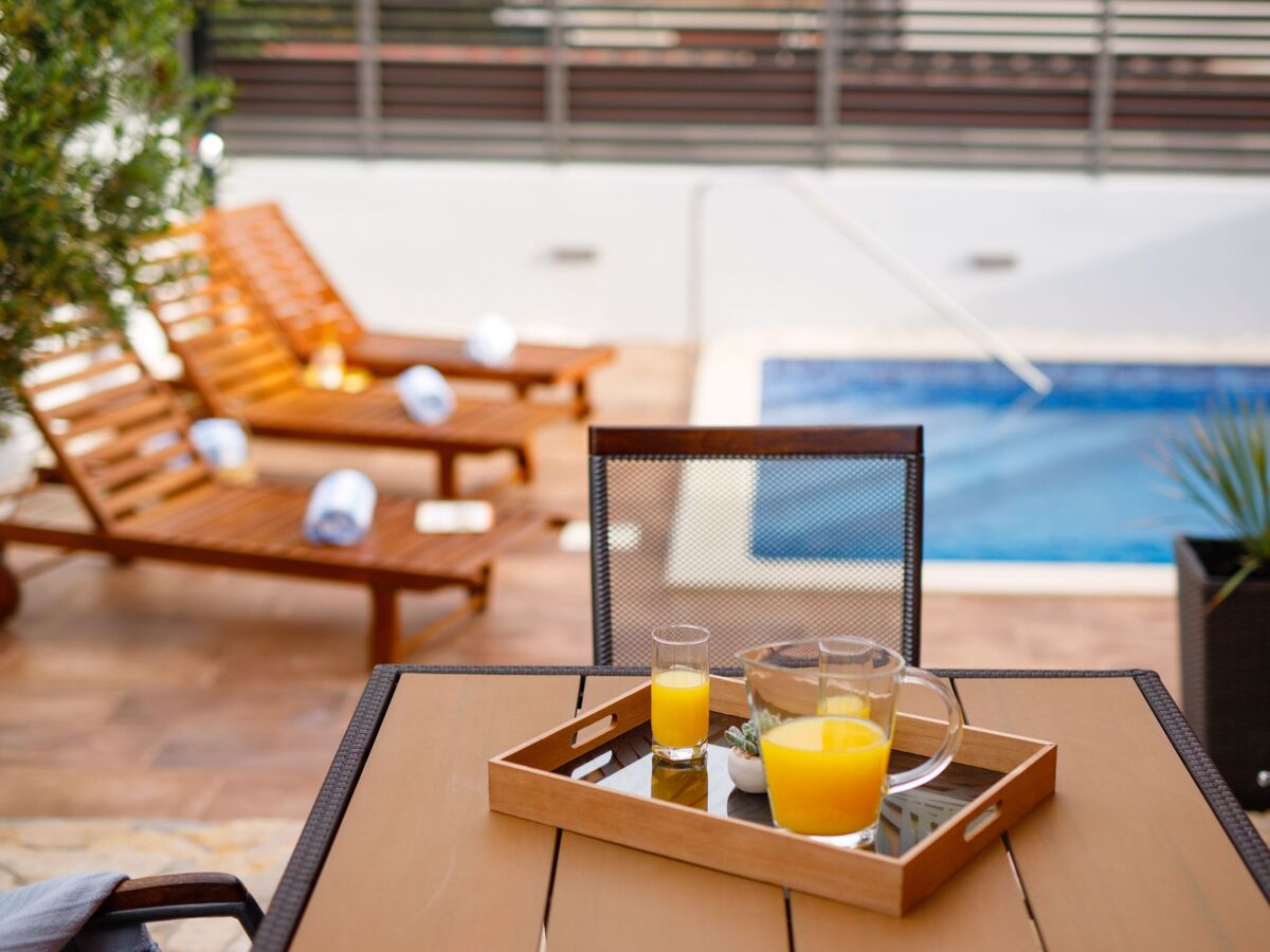 It has two apartments, a room for cleaning, private garden with a pool, place to eat and grill, parking places.