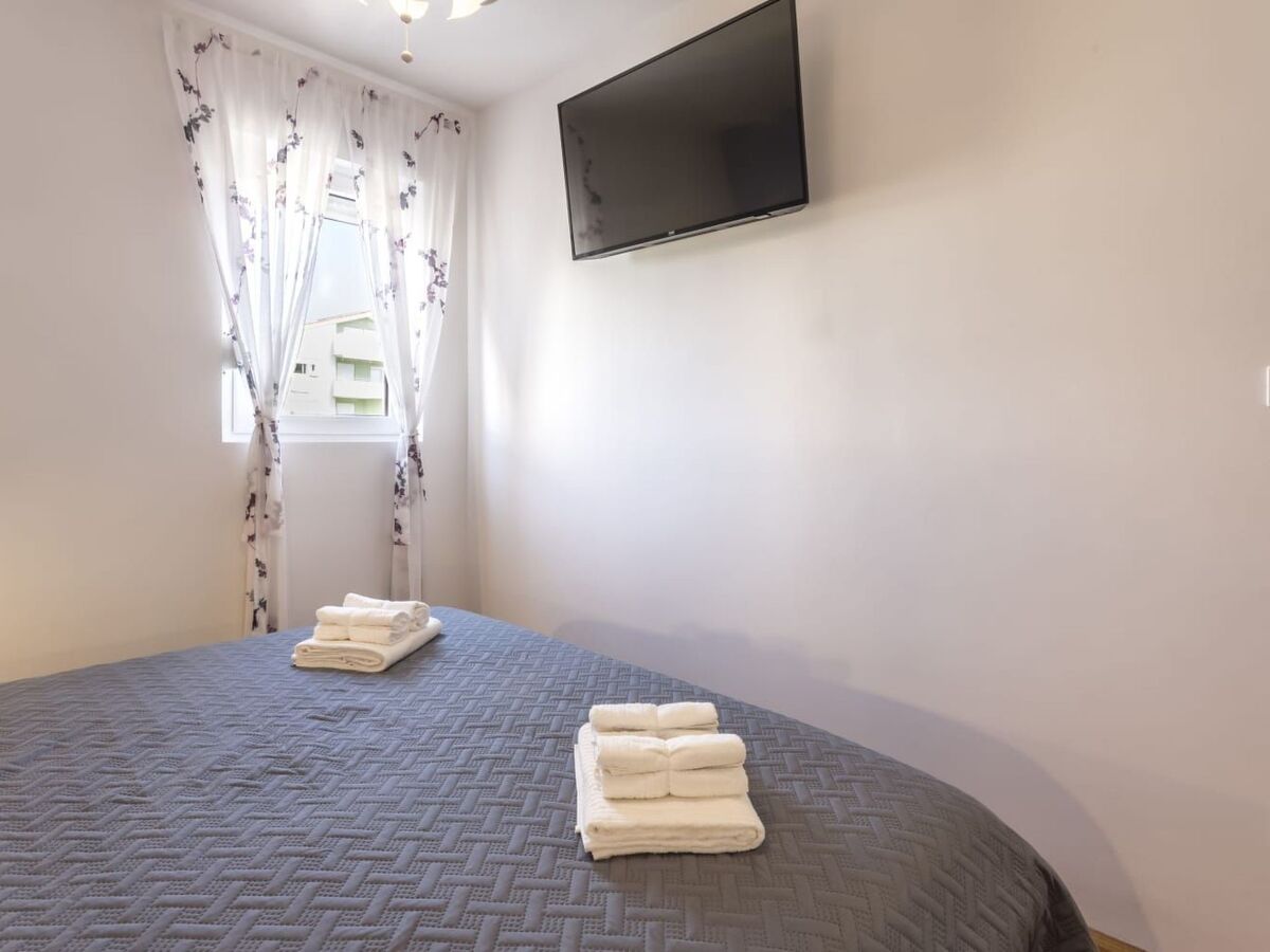 In the living room is a sofa that can be put in a double bed Up apartment has 3 double bed bedrooms, 1 kitchen with dining place, living room with sofa that can be put in a double bed and bathroom.