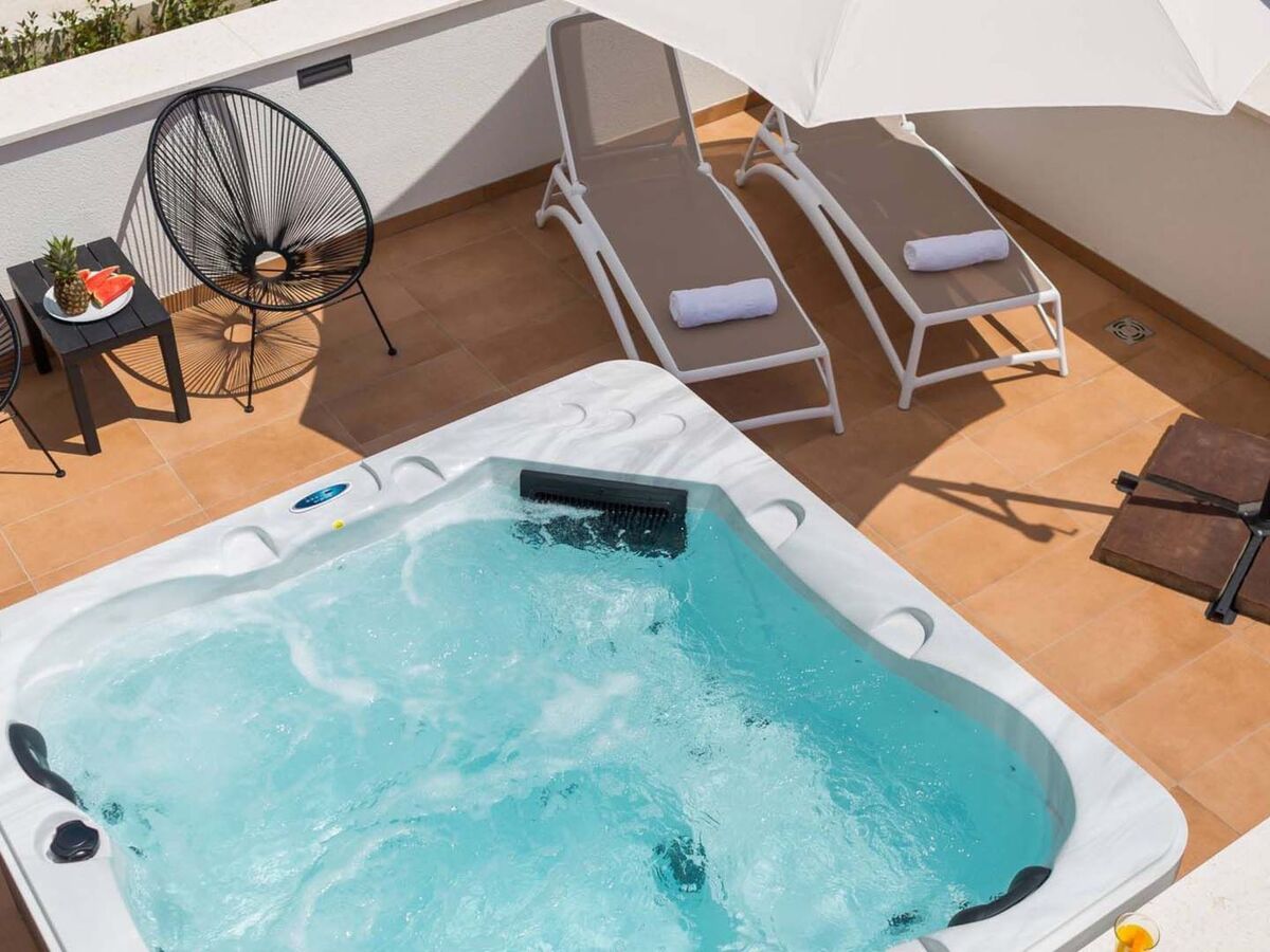 First floor has access to a seaview terrace with outdoor jacuzzi, while a separate staircase leads to the roof terrace equipped with outdoor table and chairs and a beautiful seaview spreading over the entire bay.