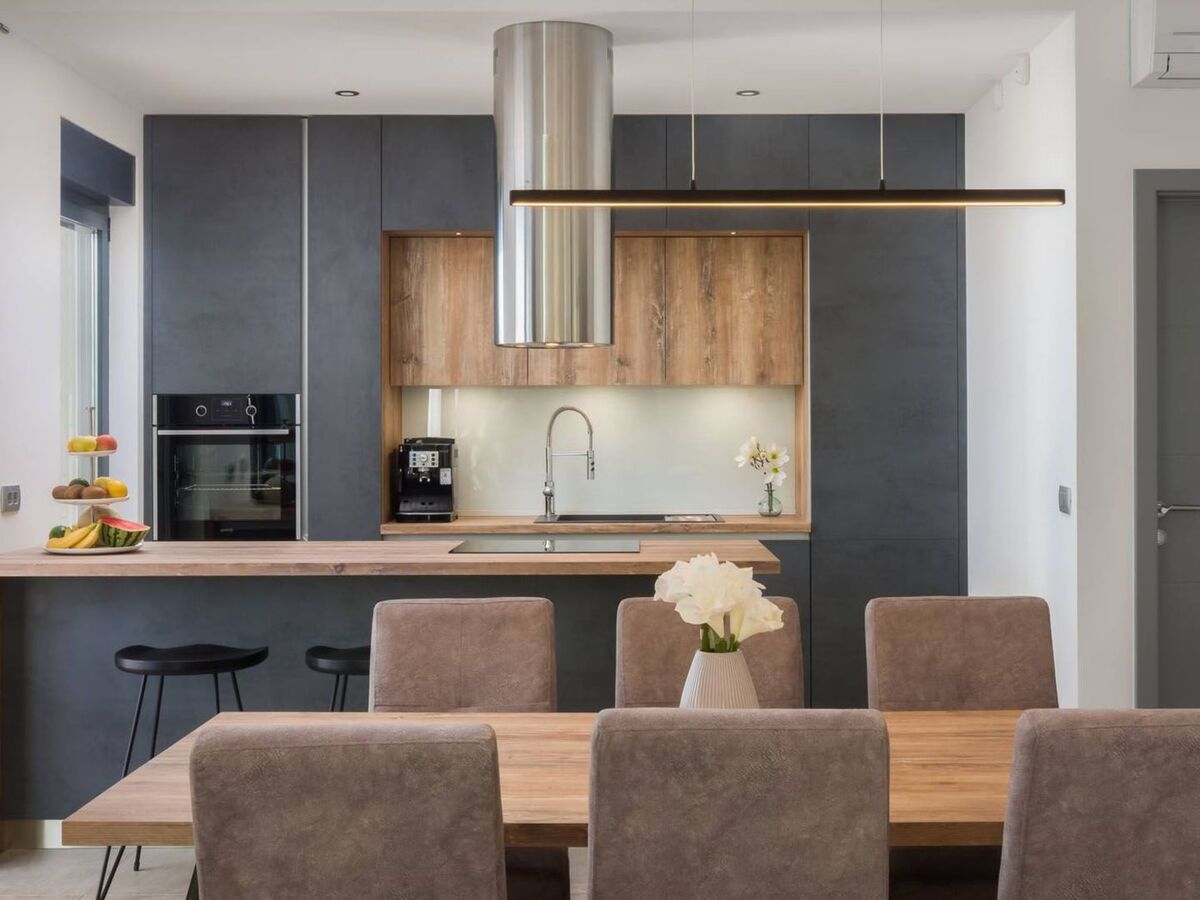 Glass door leads to the spacious terrace with outdoor furniture, outdoor barbecue/grill and a private heated outdoor pool (29 m2), perfect for relaxing during the hot summer afternoons.