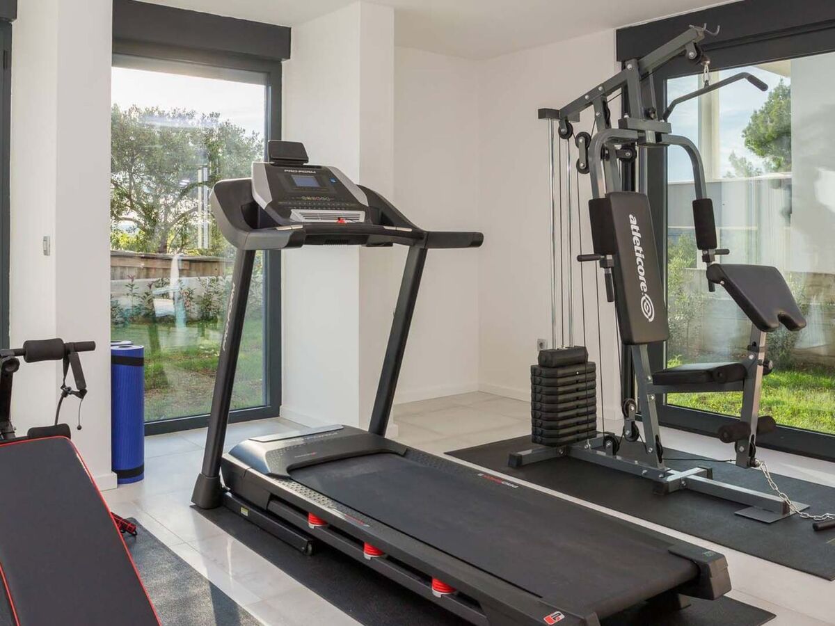 The subterranean area is designed as a recreation area for those looking for more active ways to spend their holiday – equipped with a gym and an infrared sauna (for 4 persons).
