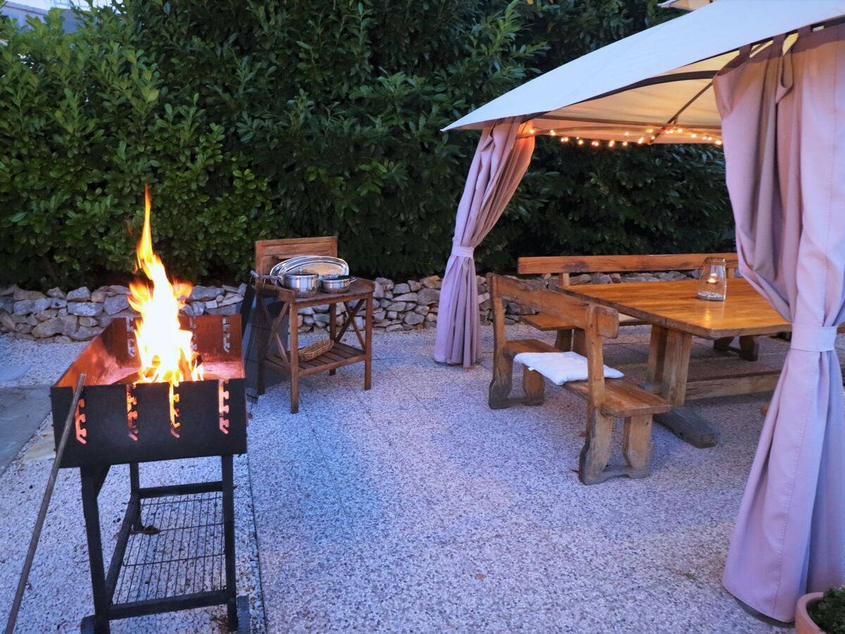 The spacious pool area provides a divine choice of spots to catch the sun rays or to find shady corners, while the shaded gazebo with a BBQ and big dining table invites to spend long dinners and great get-together moments.