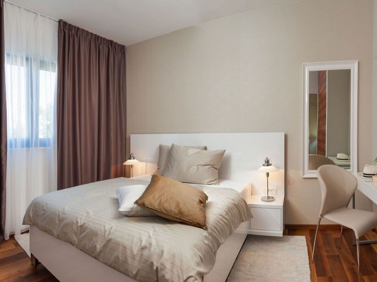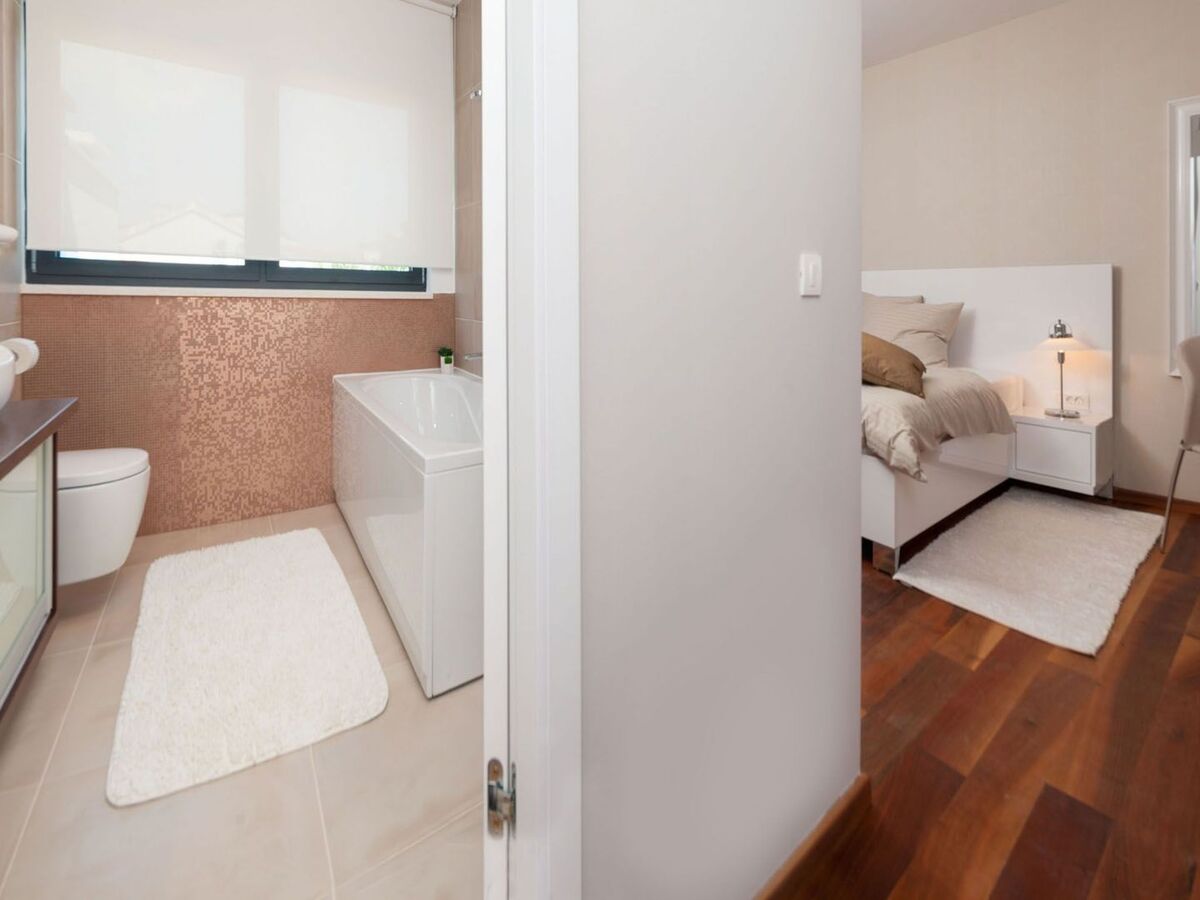 The master bedroom has access to the spacious terrace with outdoor table and chairs, a sun lounger and a breathtaking sea view.