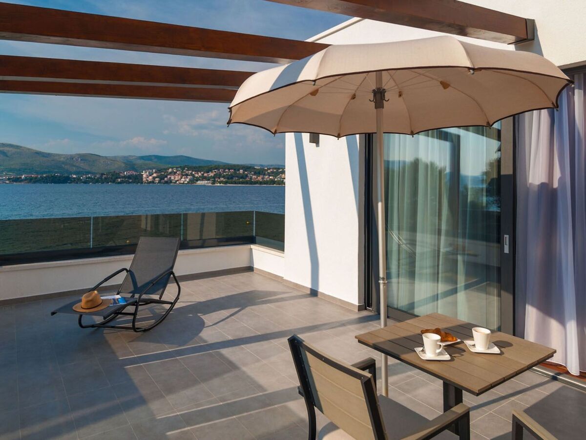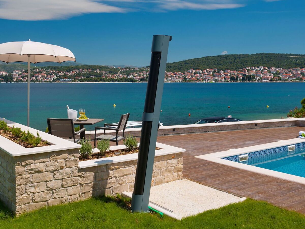 Luxurious five star villa Rose is located in the first row from the sea in Okrug Gornji on island Čiovo, which is connected to the mainland with two bridges and conveniently located just 4 km from UNESCO protected center of town Trogir.