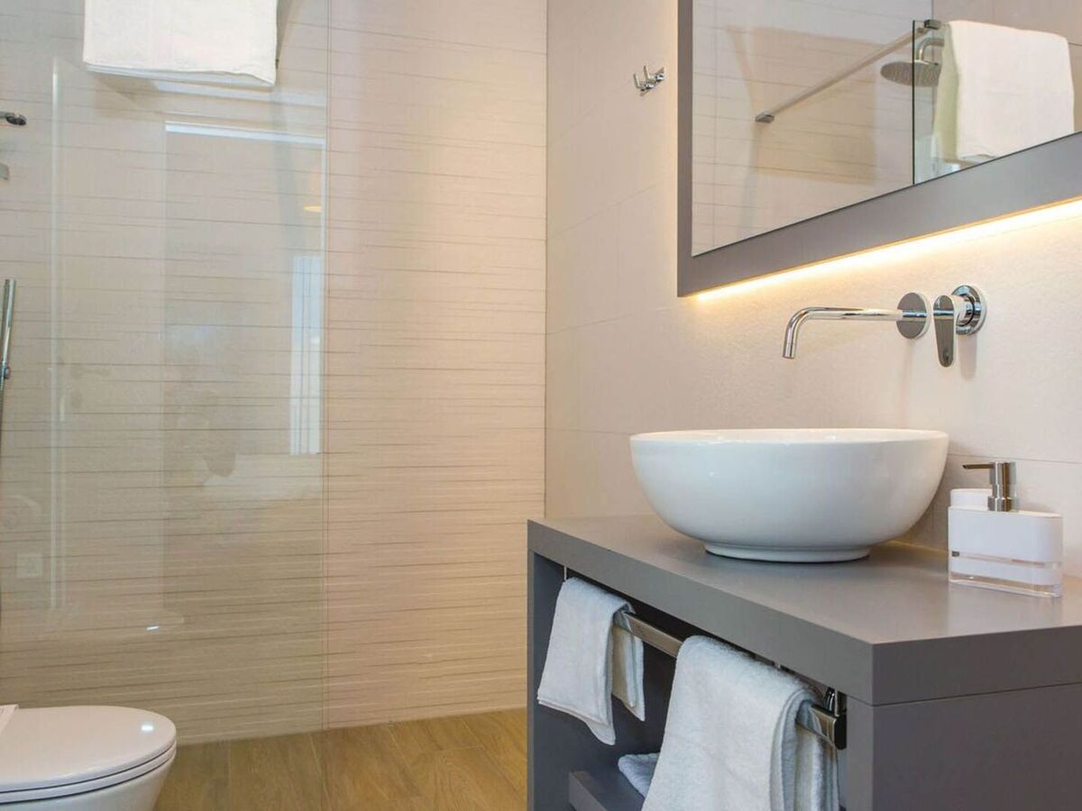 The ground floor is designed as a spacious and bright lounge area which consists of a fully equipped modern kitchen, contemporary living room with dining area, 1 bedroom with double bed and 1 bathroom with shower.