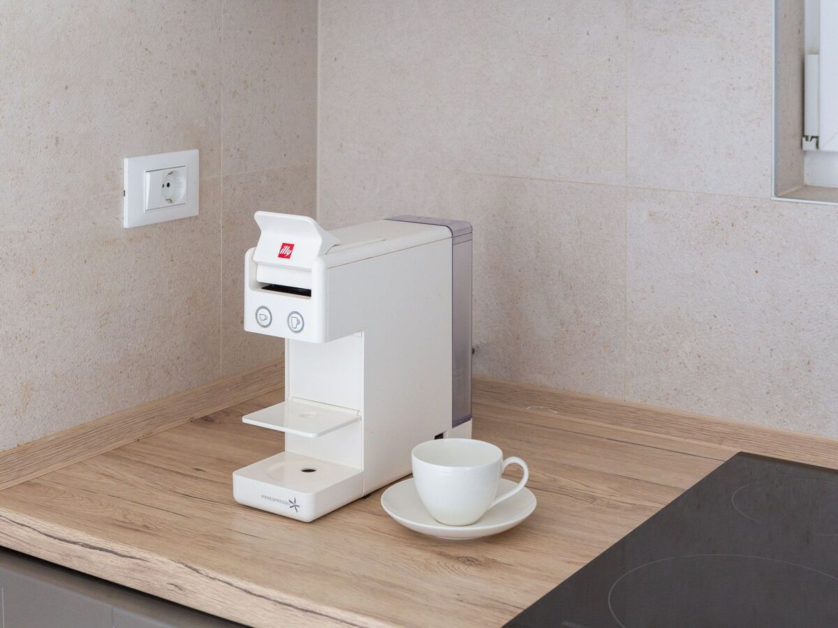 The kitchen is fully equipped with dishes and cutlery, there is a refrigerator with freezing department, stove, oven, dishwasher, coffee maker and dining area.