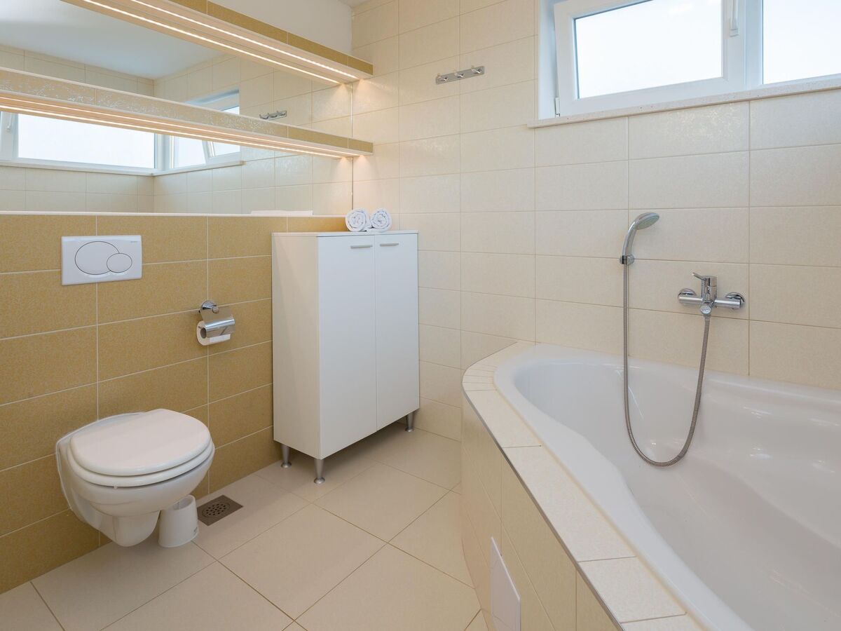 The left wing on the ground floor has a kitchen, living area with double sofa bed, one bathroom and one double „en suite“ bedroom, ideal for disabled people.