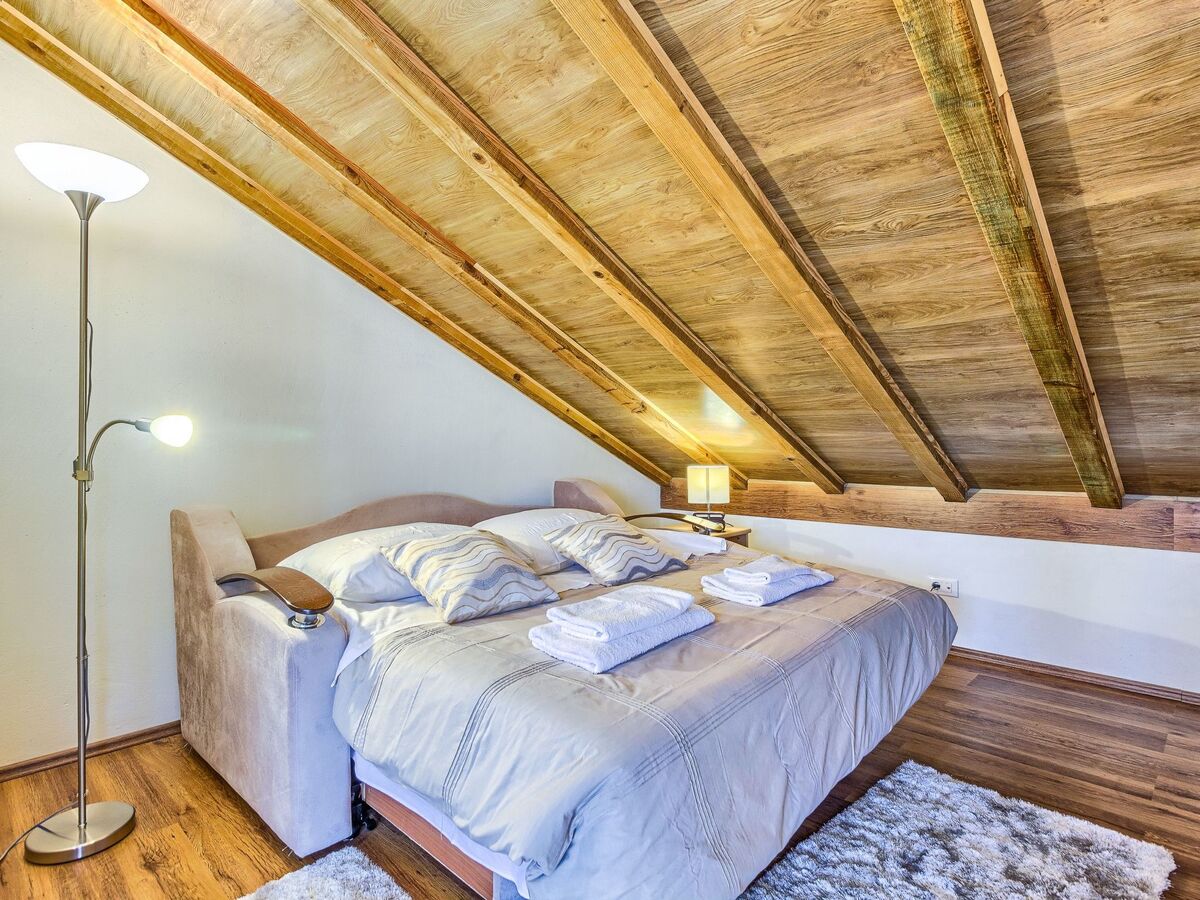 Top floor has 80m² and 2 bedrooms of which first has a double bed measuring 160 x 200cm, and second has a single bed measuring 90 x 200cm.