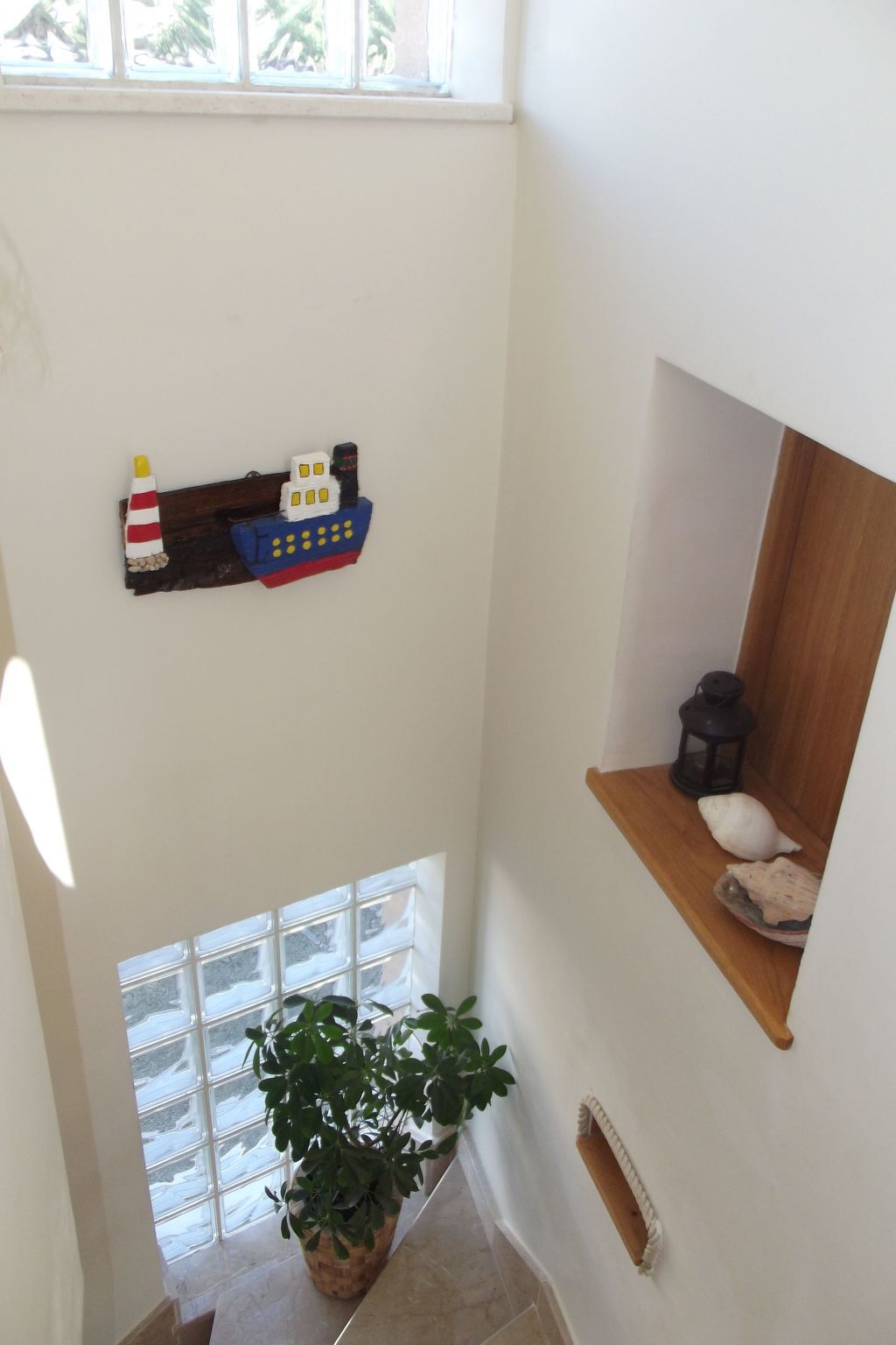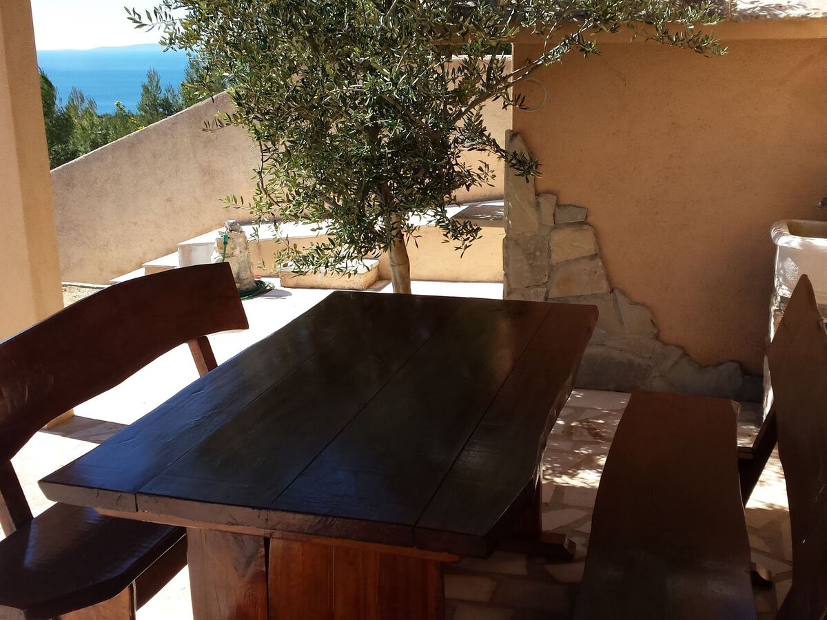 The bedroom on the top floor has access to a large sunny balcony, offering breathtaking panoramic views over the hilly landscape to the sea.
