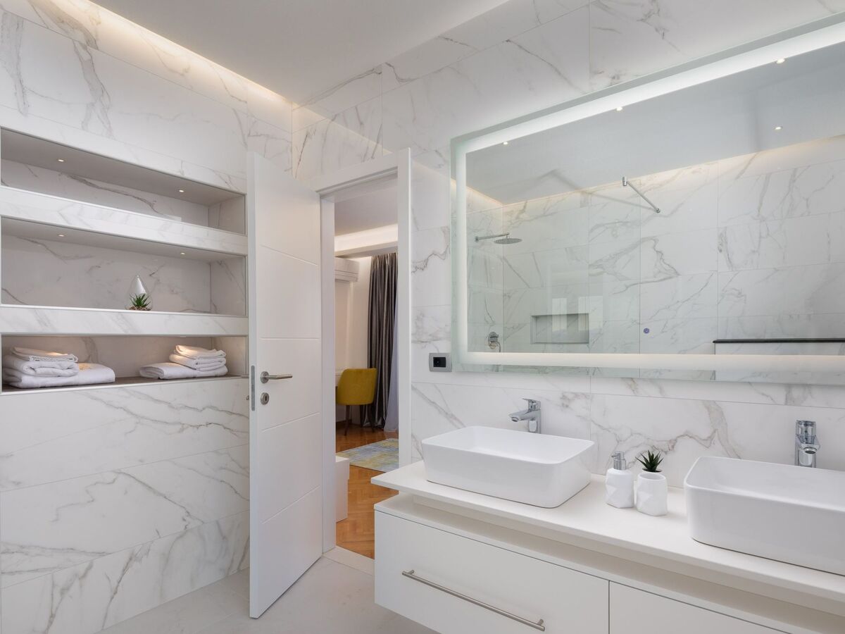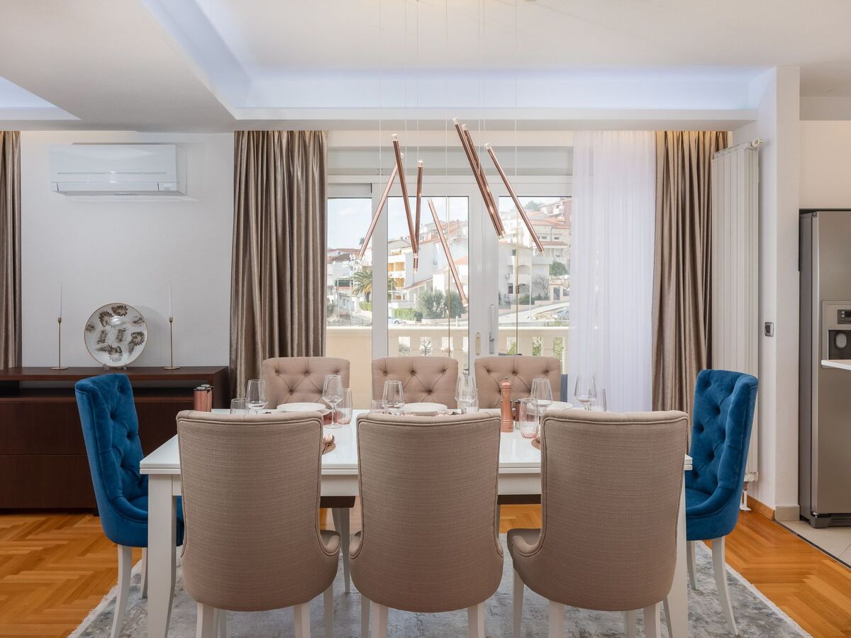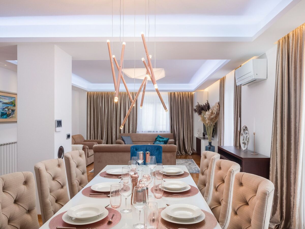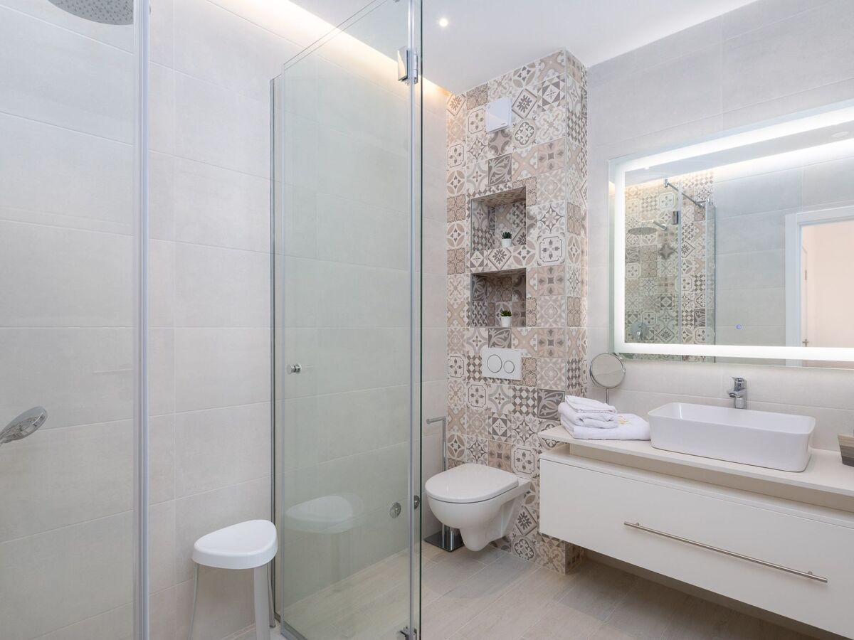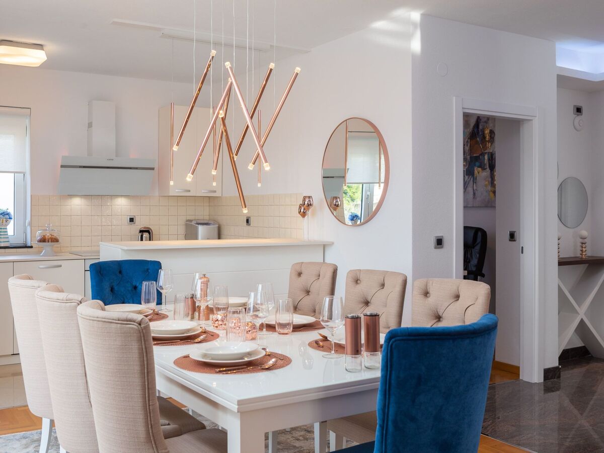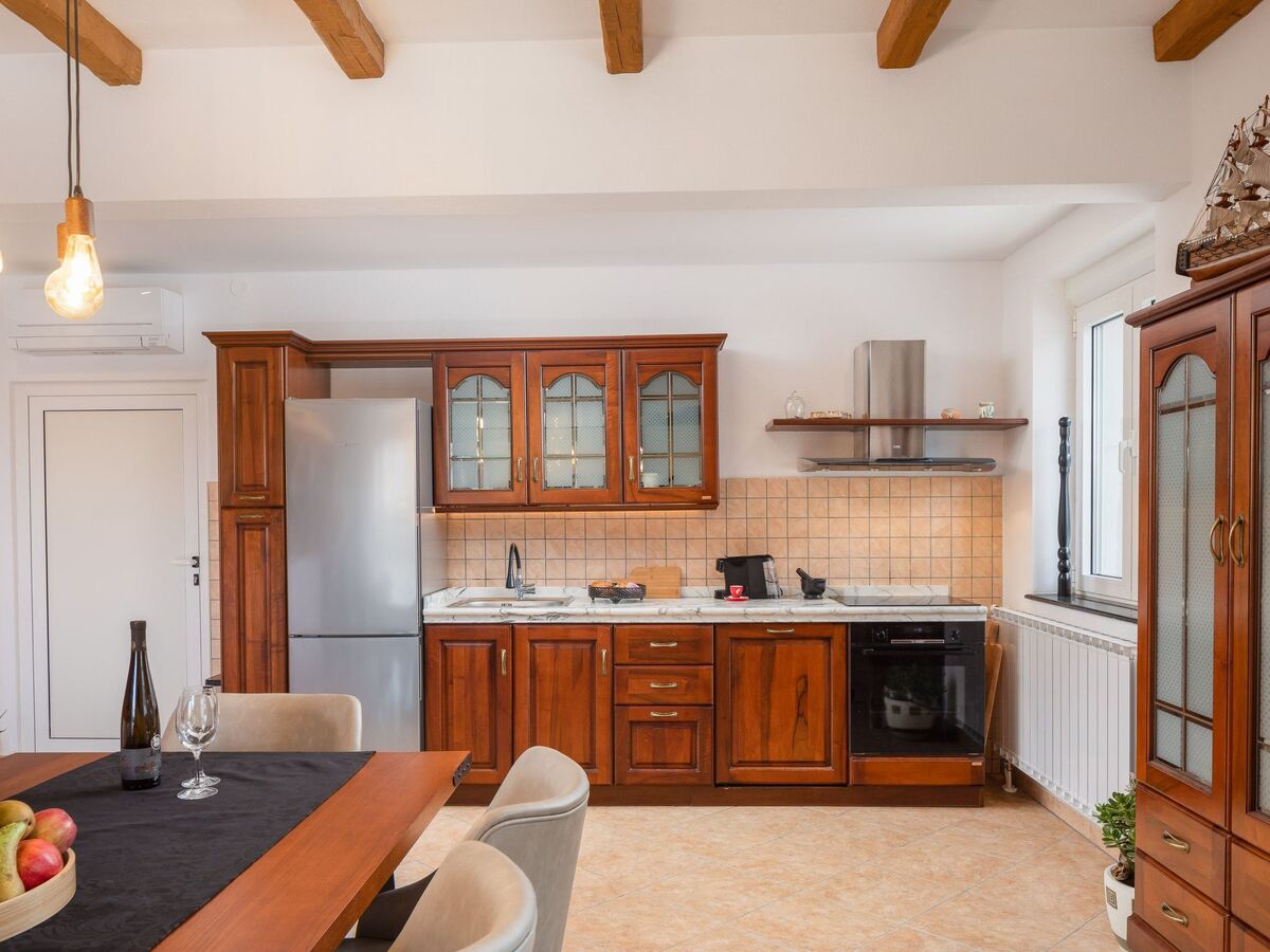 Moving to the ground floor of the villa, you will have at your disposal a fully equipped kitchen with stove top, oven, fridge, dishwasher and other kitchen utilities with a dining area and one bathroom.