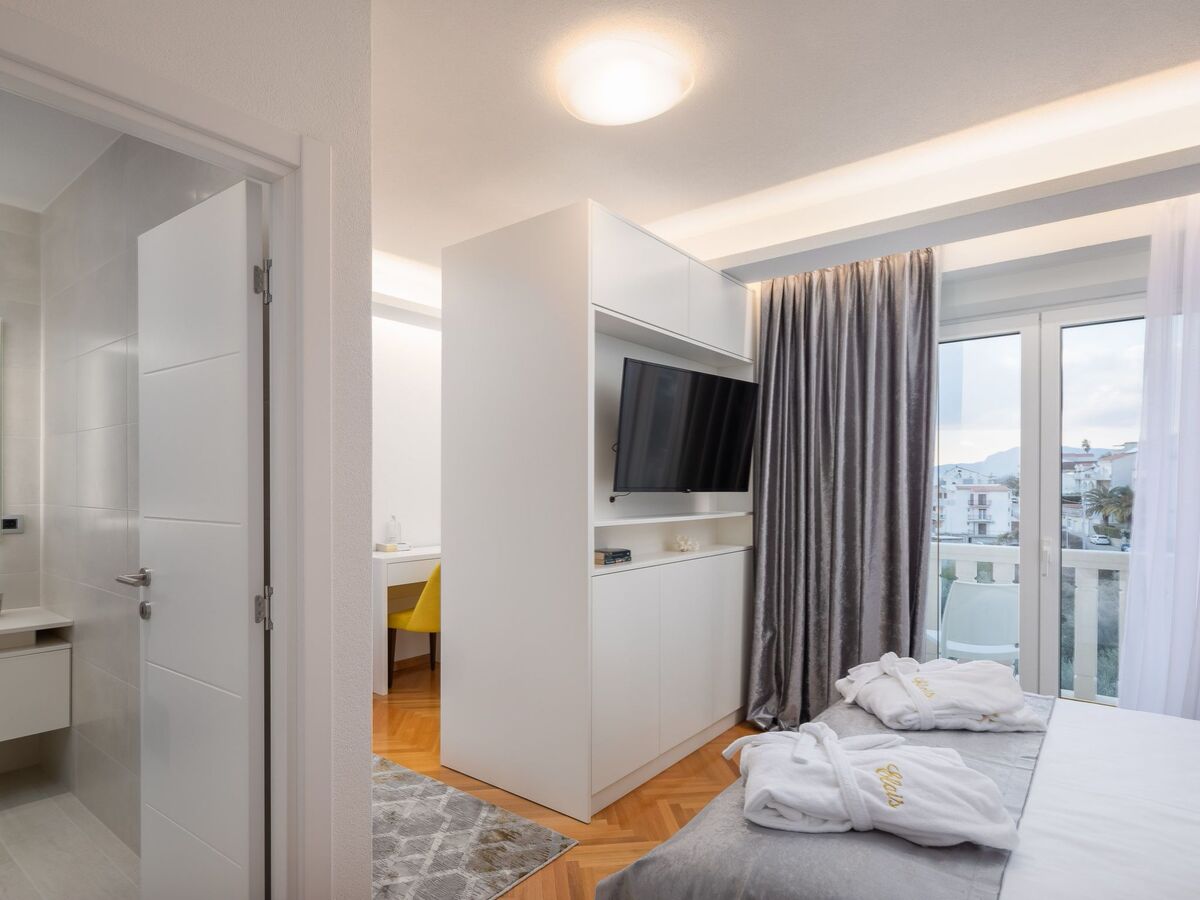 Three en-suite bedrooms can be found on the second floor of the villa: each bedroom has an extra large double bed with flat screen TV, air conditioning and balcony.