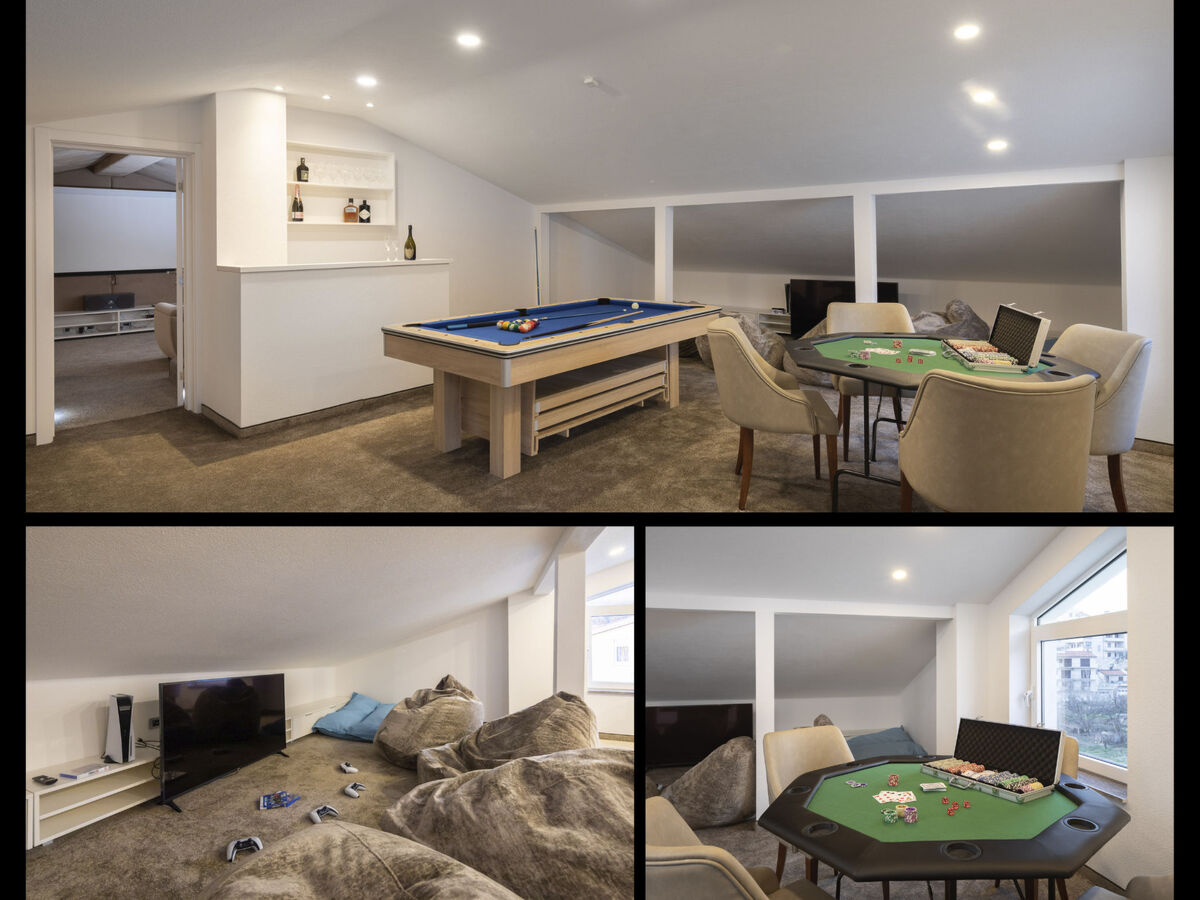 The Attic of the villa is specially adjusted for one spacious cinema room and playroom with pool table and darts.
