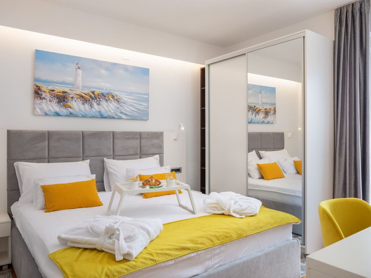 First floor of the villa has a fully equipped kitchen with stove top, oven, fridge, dishwasher and other kitchen utilities with dining area, spacious living room with flat screen TV, one en-suite bedroom, with extra large double bed with flat screen TV, air conditioning and balcony.