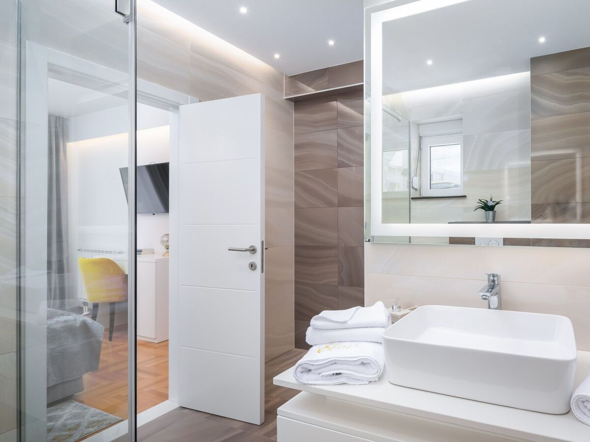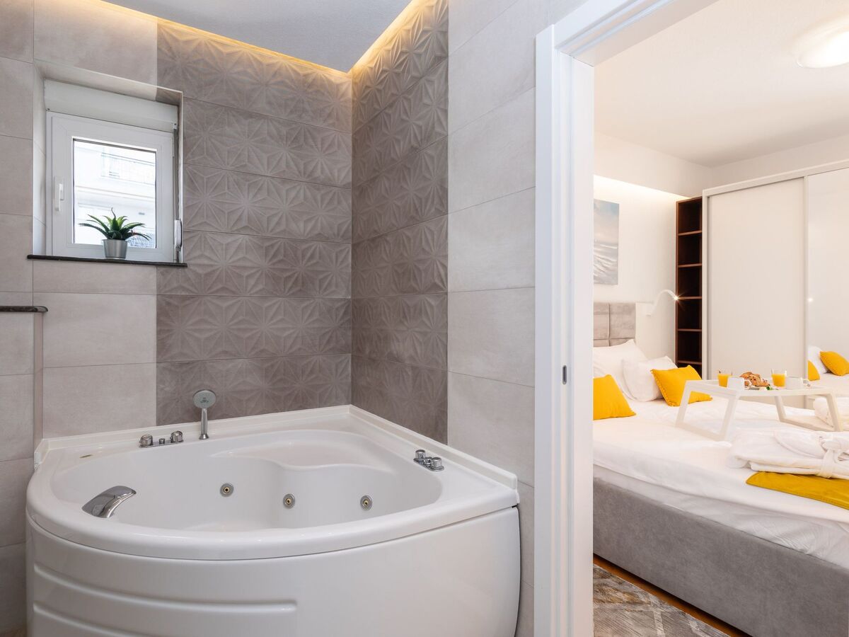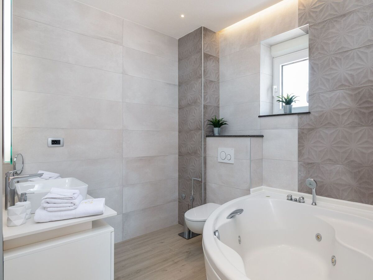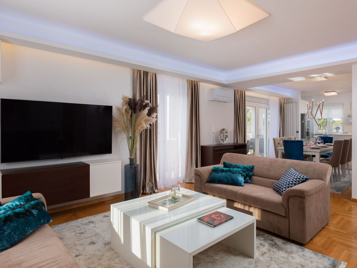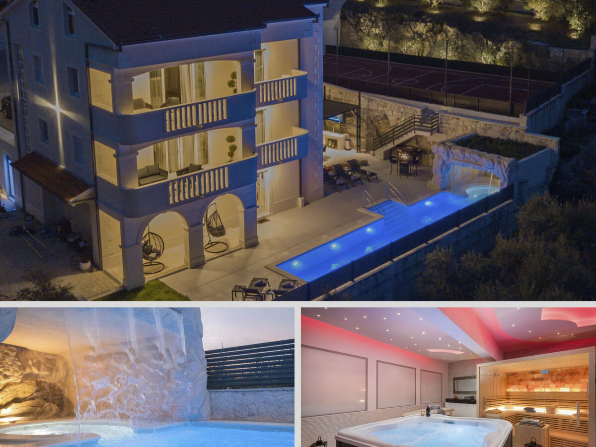 It offers a heated swimming pool with a whirlpool, outdoor shower, sunbathing area and a multipurpose terrain, summer kitchen with brick barbecue, outdoor dining area with flat screen TV and fire pit, an air conditioning and internet connection in every area of the villa.