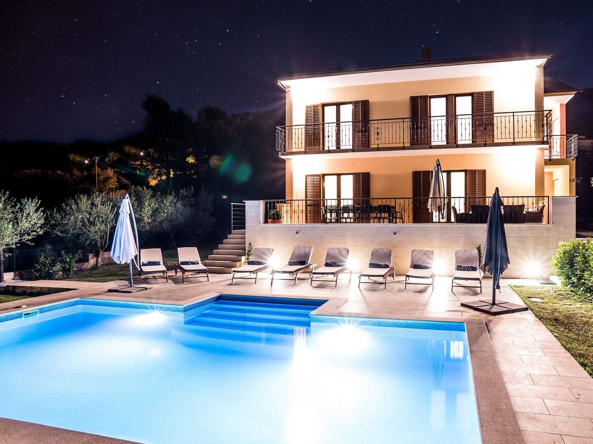 The villa is not suitable for groups under the age of 28. Out of respect for our neighbors, parties and loud noise are not allowed after 10:00 PM, as the house is located in a quiet residential area. Our beautifully renovated villa, offering full privacy and comfort just 10 minutes from Split’s Old Town. Located in a calm residential area, the property is fully fenced, ensuring peace and privacy with no physical contact with neighbors. The beach, newly renovated and only 400 meters away, makes your stay even more enjoyable, while the only golf course in the area is just 250 meters from the villa. Inside, the villa features spacious rooms renovated at the end of 2018, each offering the flexibility of either a double bed or two single beds, perfect for couples or friends. All furniture is brand new, and the living area includes a football table for fun evenings. The private heated pool (35 m²) offers plenty of space for up to 12 people and can be covered and heated during cooler months for year-round use. Outdoor amenities include sun loungers, comfortable seating, and beach towels – everything you need for total relaxation. Our guests appreciate that the property is managed by a owners themself from Split-Villascom, known for attention to detail and personal service throughout your stay. If you have any questions, please don’t hesitate to contact us — we’ll be happy to help make your stay unforgettable. Basic information - Pets allowed: none - is located in: Housing estate - type of building: Detached house - Total number of floors in the building above the ground floor: 2 - size of property: 1500 m² - year of construction: 2010 - Year of the last complete renovation : 2022 - detached house - no group bookings - no youth groups - non-smoking - Number of bedrooms: 6 - Number of bathrooms: 3 Top features - WiFi - air conditioning: Everywhere - heating: Everywhere - balcony - terrace - garden: For sole use - completely enclosed (by wall, fence or hedge) - outdoor pool - ㄴ for sole use - ㄴ maximum depth: 160 cm - ㄴ length: 800 cm - ㄴ width: 400 cm - ㄴ pool heating - Total of private car parking spaces: 5 - ㄴ of which carport spaces: 4 - ㄴ of which private outdoor parking spaces: 5 Sleeping bedroom 10 - double bed (1.80 m width) - 2x single bed bedroom 12 - double bed (1.80 m width) - 2x single bed bedroom 2 - double bed (1.80 m width) - 2x single bed bedroom 4 - double bed (1.80 m width) - 2x single bed bedroom 6 - double bed (1.80 m width) - 2x single bed bedroom 8 - double bed (1.80 m width) - 2x single bed Bathroom bathroom 2 - shower - toilet bathroom 4 - shower - toilet bathroom 6 - shower - toilet Cooking/Living - coffee machine: filter coffee machine - fridge/freezer: freezing compartment, deep freezer, fridge - stove: electric stove - oven - Mini oven - toaster - microwave - electric kettle - dishwasher - number of dining tables: 2 - number of seats: 12 - number of living rooms: 1 - stove Entertainment - TV: TV, antenna/DVBT TV, cable TV, satellite TV - DVD player For children - high chair Utility - washing machine: For sole use in the object - Clothes dryer: For sole use in the object - iron - vaccum cleaner - fan: 1 - safe Outside area - veranda - loggia - roof terrace - grill/barbecue: grill/barbecue - outside shower Surroundings - Nearest town centre: 600 m - Grocery store: 300 m - going out: 600 m - restaurant: 300 m - train station: 12,0 km - airport: 27,0 km - motorway: 350 m - port: 380 m - distance public transport: 350 m - beach: 350 m - playground: 400 m - golf course: 400 m - bicycle hire: 700 m - hiking trail: 600 m - riding facility: 700 m - mountain rail: 400 m