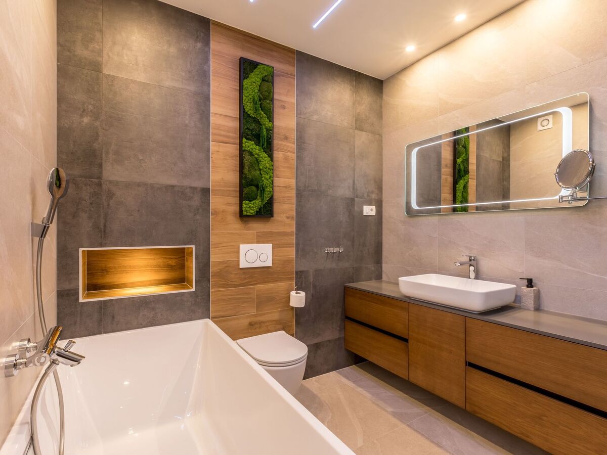 The house features three well-appointed bathrooms, catering to your convenience with a mix of showers and a bathtub with shower.