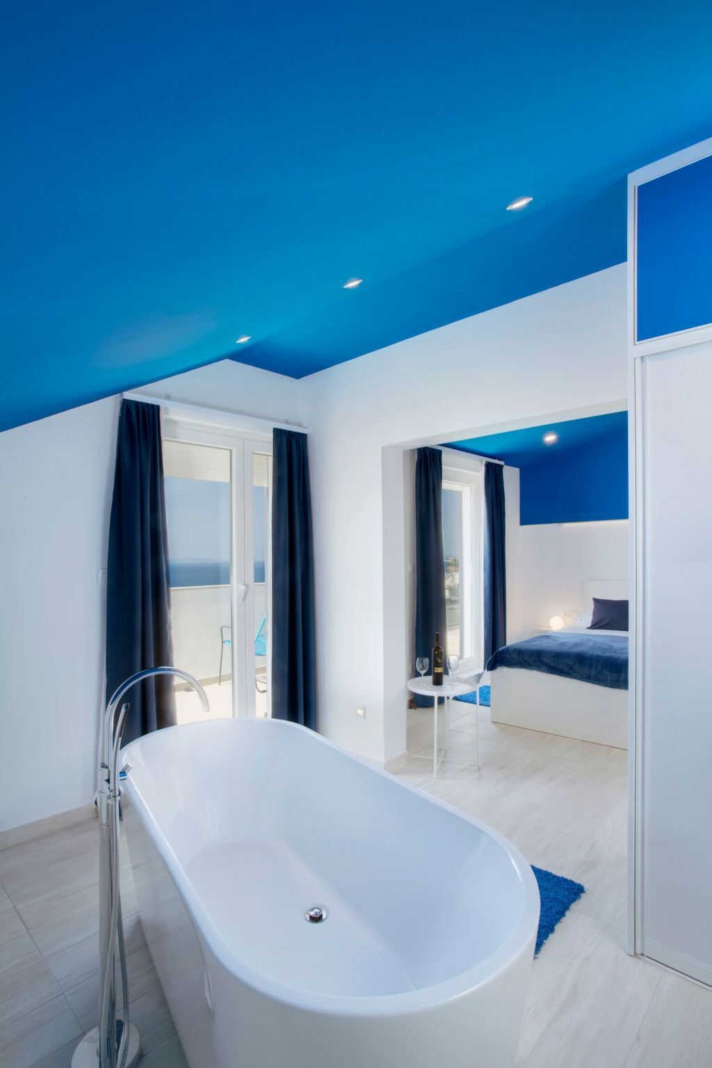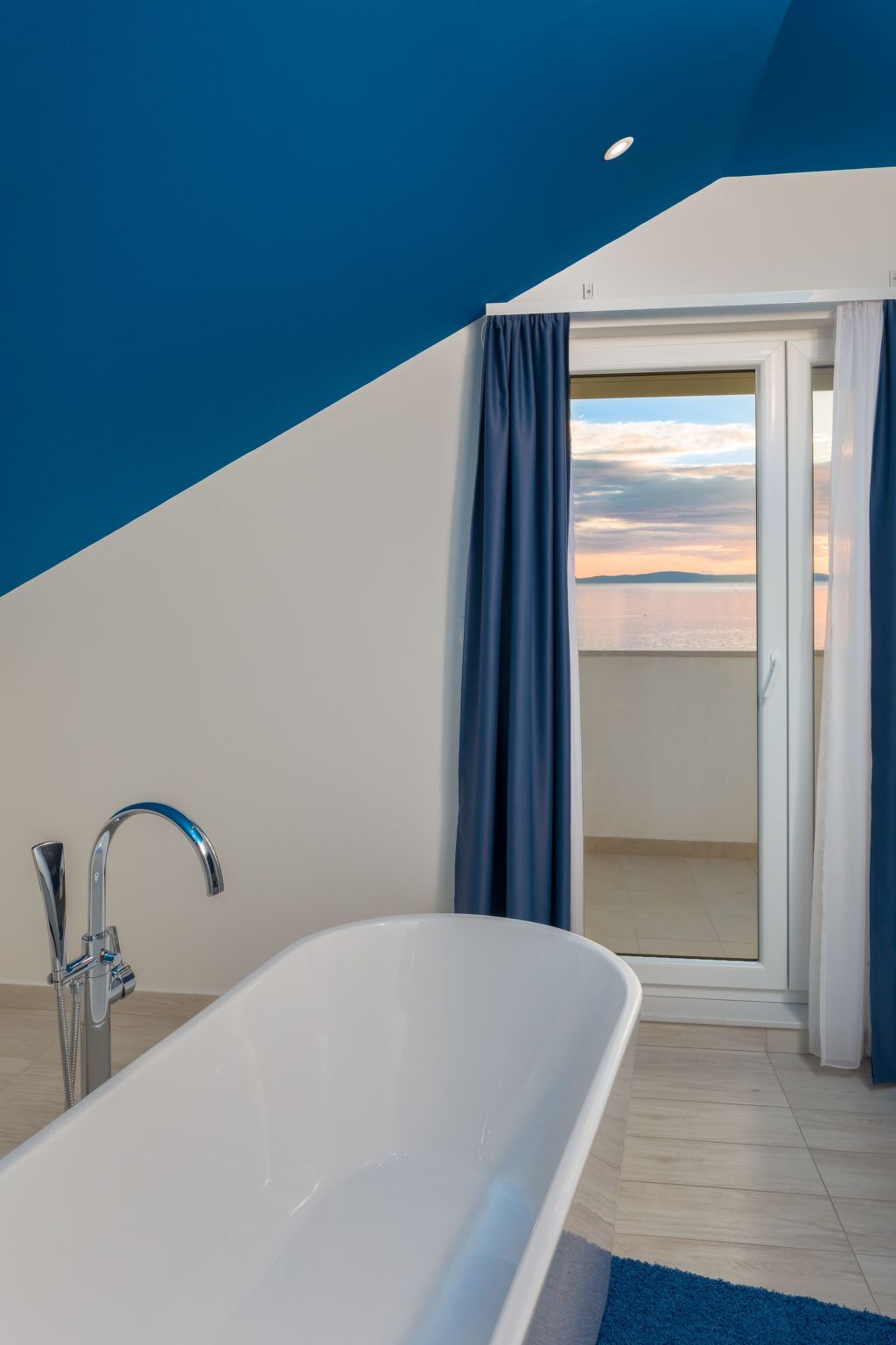 Larger bedroom on second floor has freestanding bathtub as well as en-suite bathroom and access to the terrace with amazing and unobstructed view over Adriatic islands