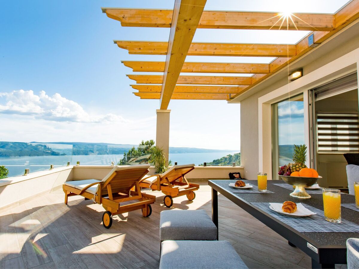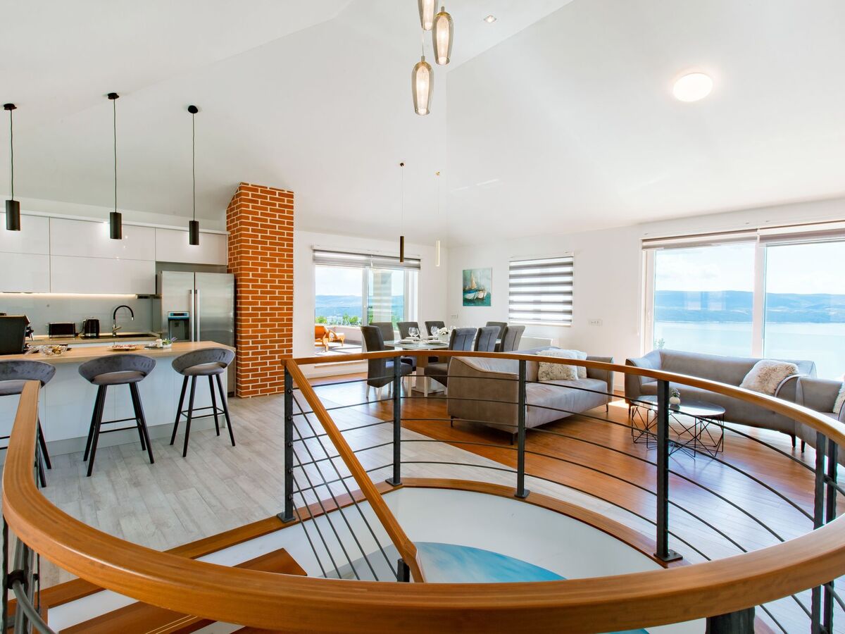 Cette luxueuse villa unique pour des vacances détendues, avec une vue magnifique sur la mer depuis le pied de la montagne Dinara, est située à Lokva Rogoznica dans le comté de Split-Dalmatie.