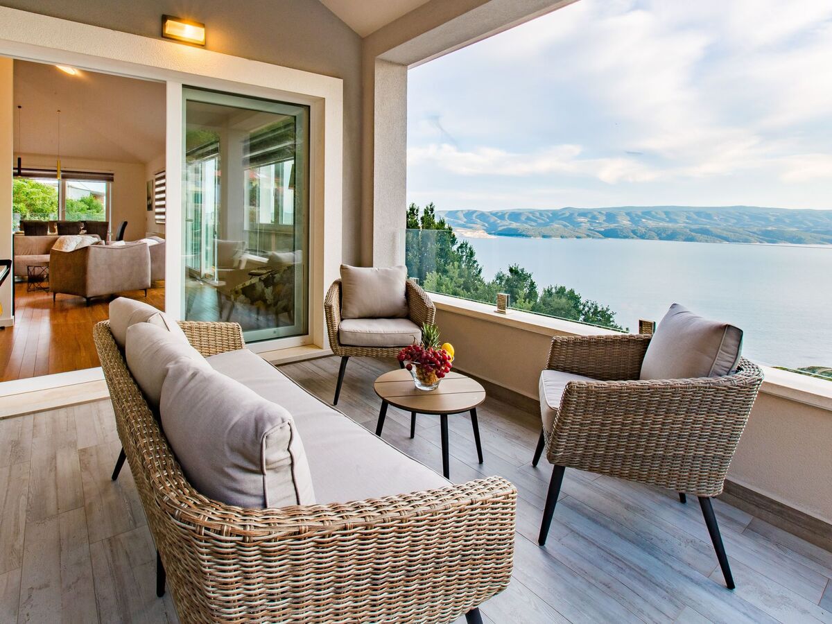 Depuis le salon, vous pouvez accéder à un charmant balcon avec un coin salon et de magnifiques vues sur la mer et les montagnes.
