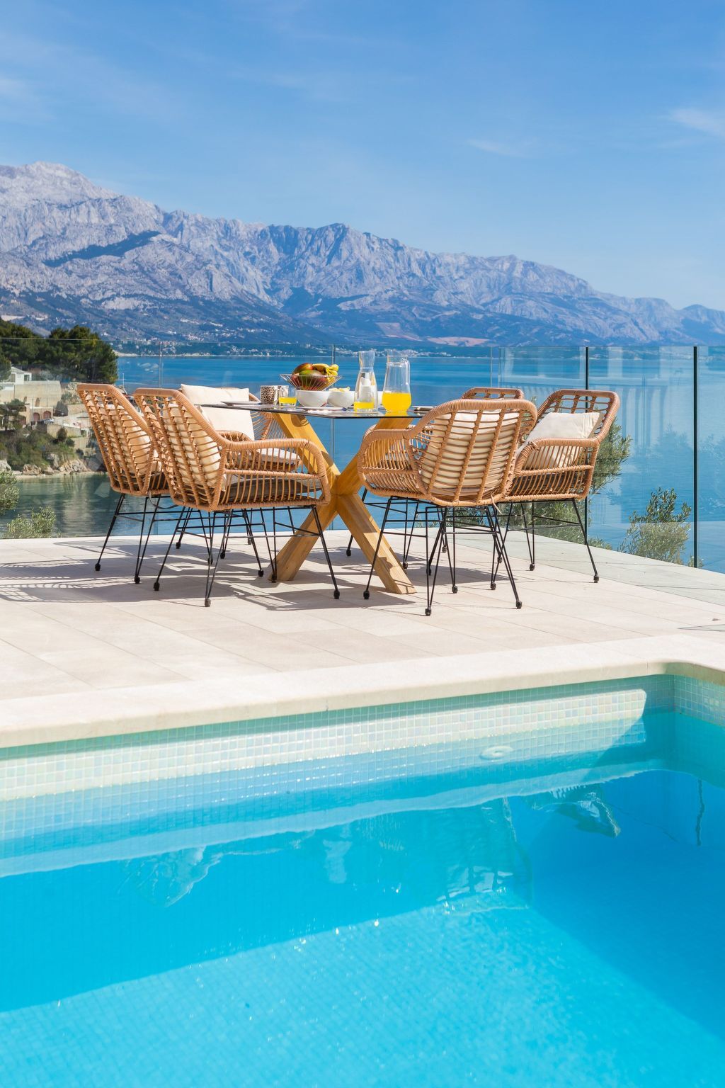 You can go out directly onto the veranda and the terrace, to access the heated pool, overlooking the sea.