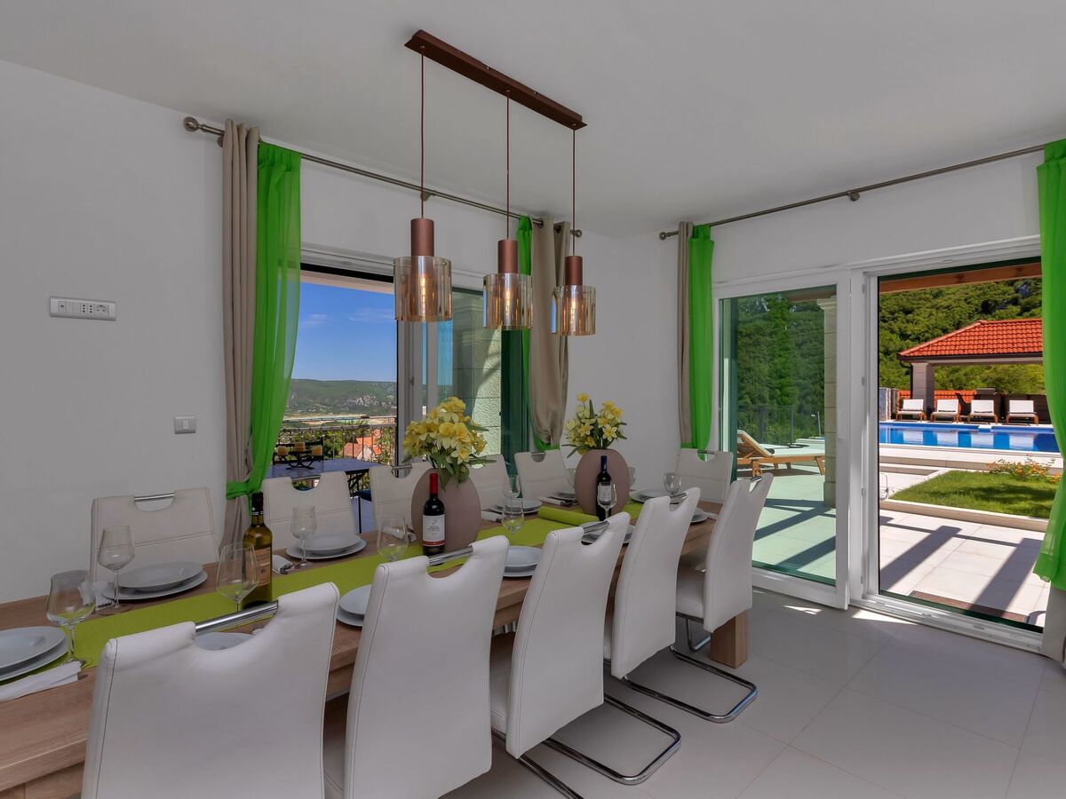 The spacious kitchen is fully equipped (6 induction hobs, fridge-freezer, microwave, oven, dishwasher, dining table for 12 people).