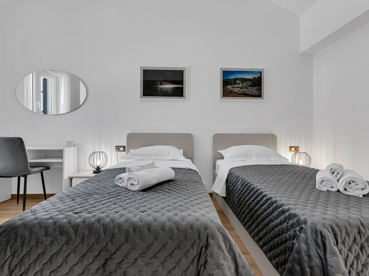 Villa Maslina can accommodate 6+2 persons in 3 bedrooms and a living room (5 beds in total).