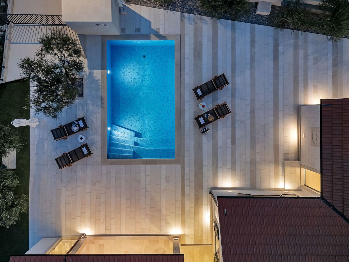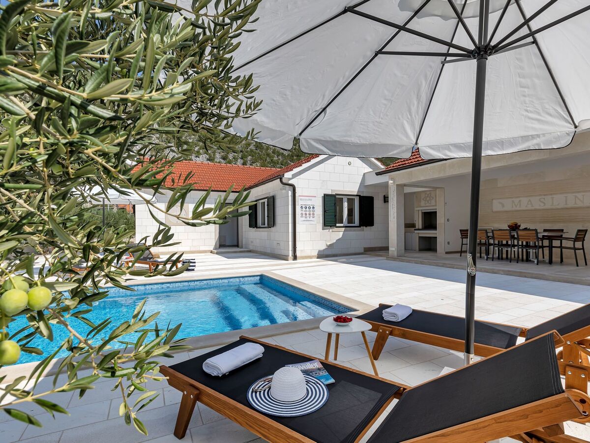 Villa Maslina has 2 full bathrooms and an additional toilet, equipped kitchen with a dining area and a private outdoor swimming pool.