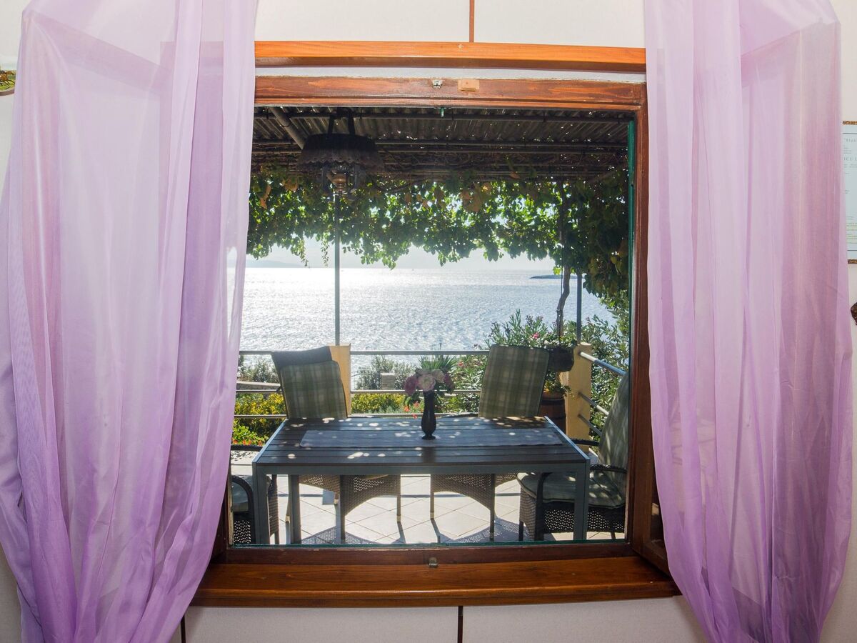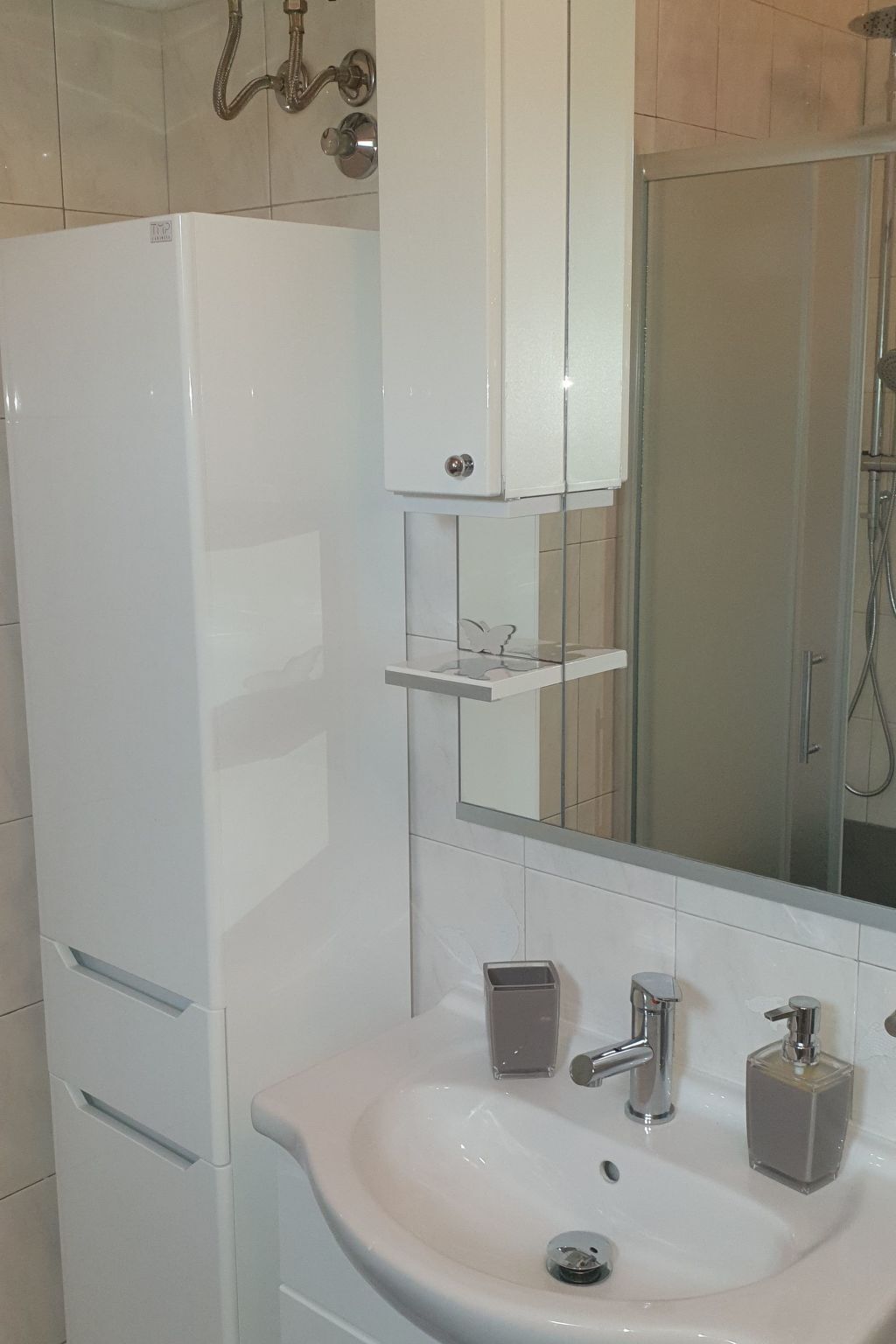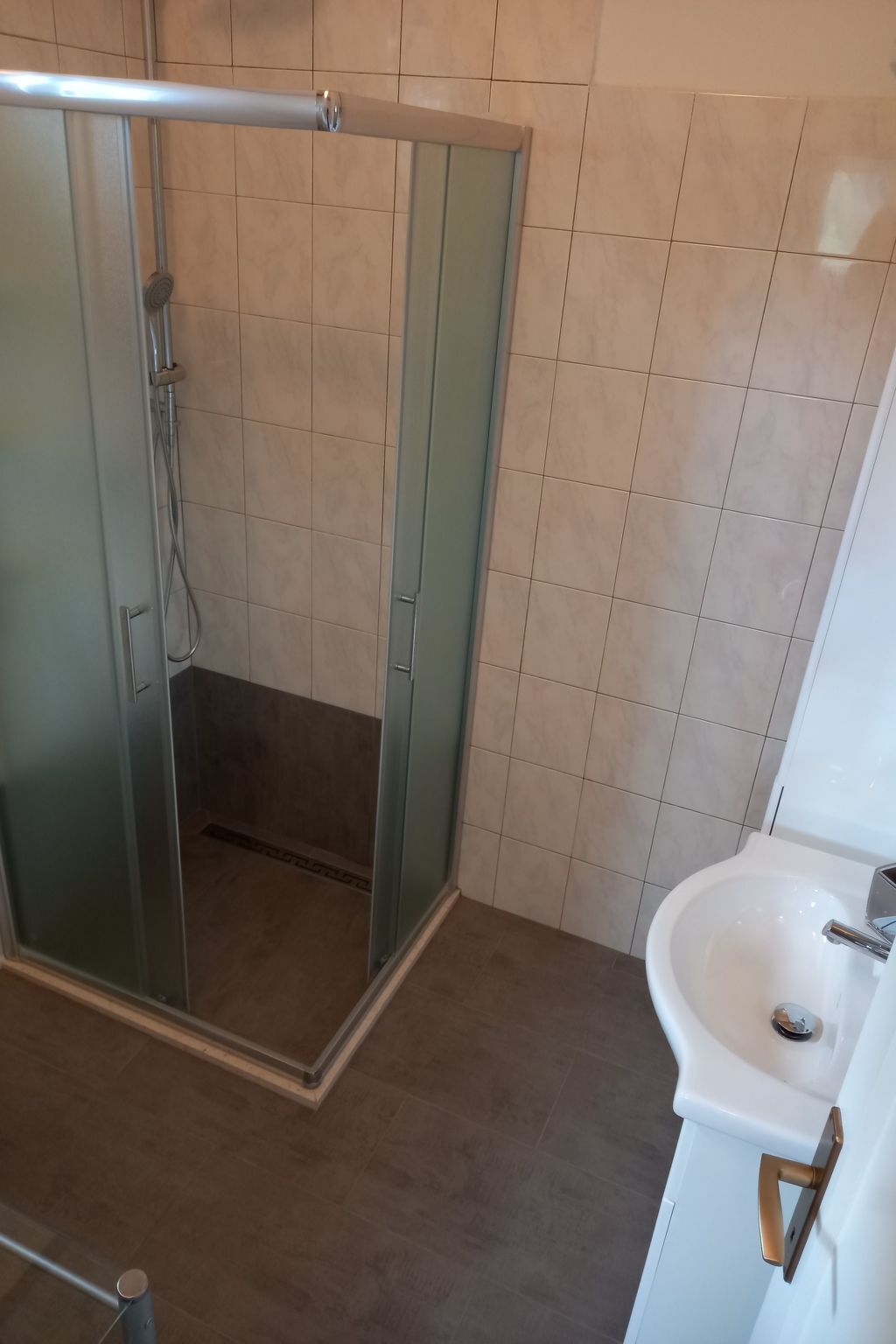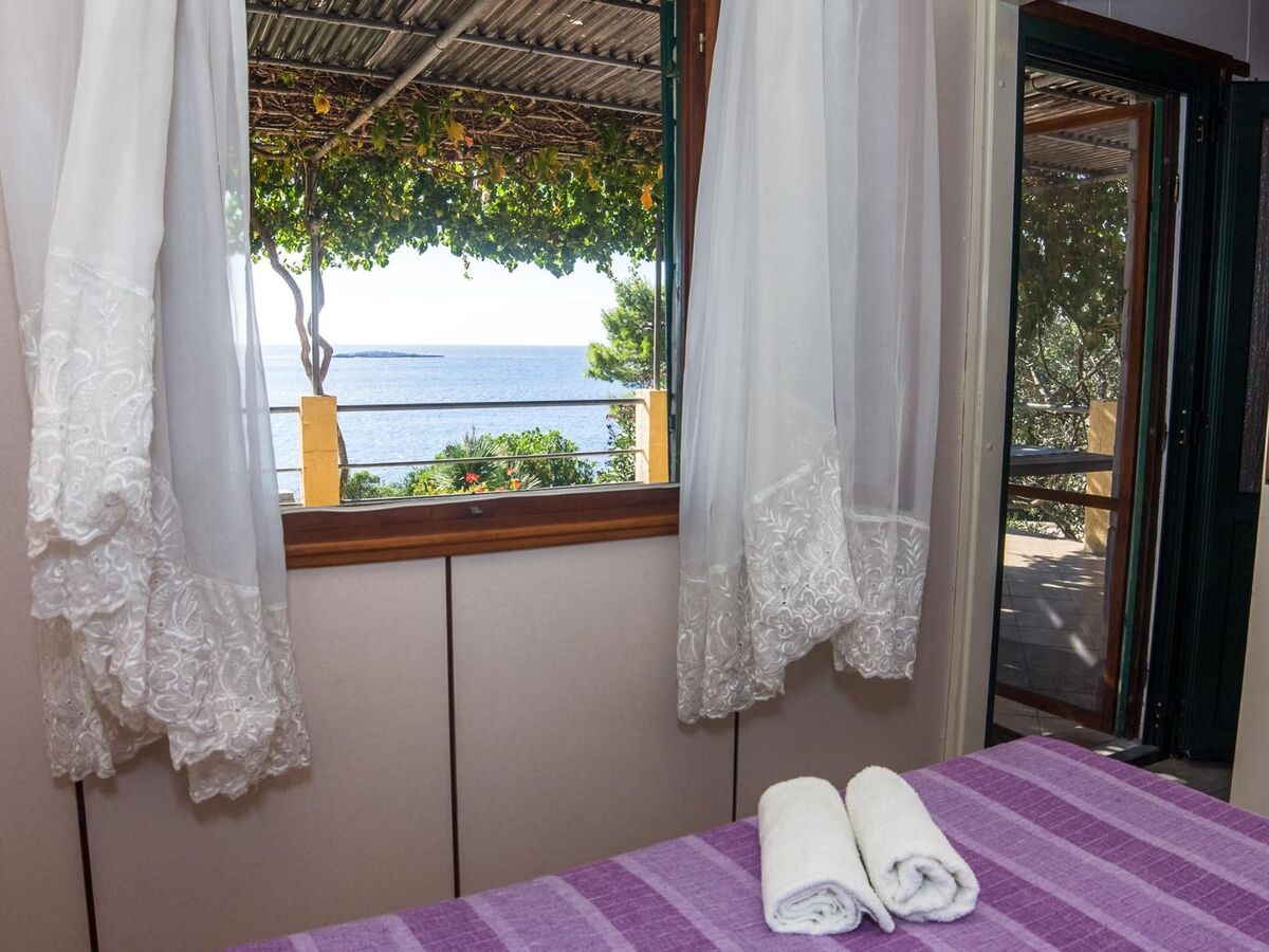 Next to it there is the separate kitchen with a hob, oven, fridge, dishwasher, kettle and cooking utensils.