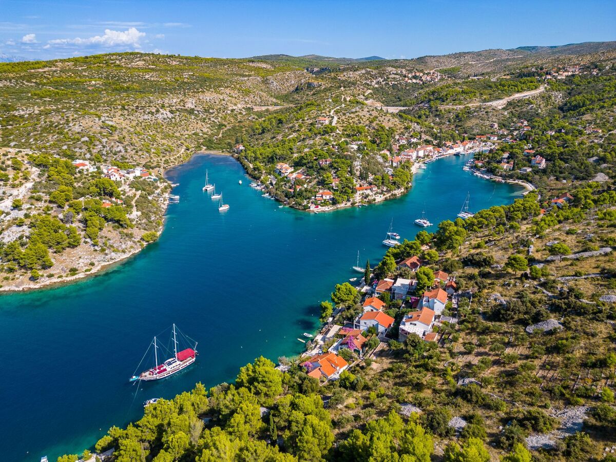 Bobovišća na moru is located on the west coast of the island of Brač in a beautiful cove that