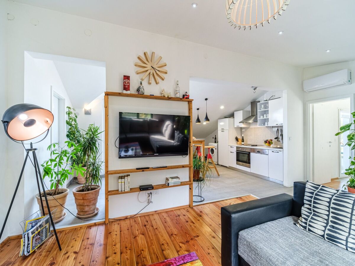 The second-floor apartment has two bedrooms, a living room, a kitchen, and two fully equipped toilets.