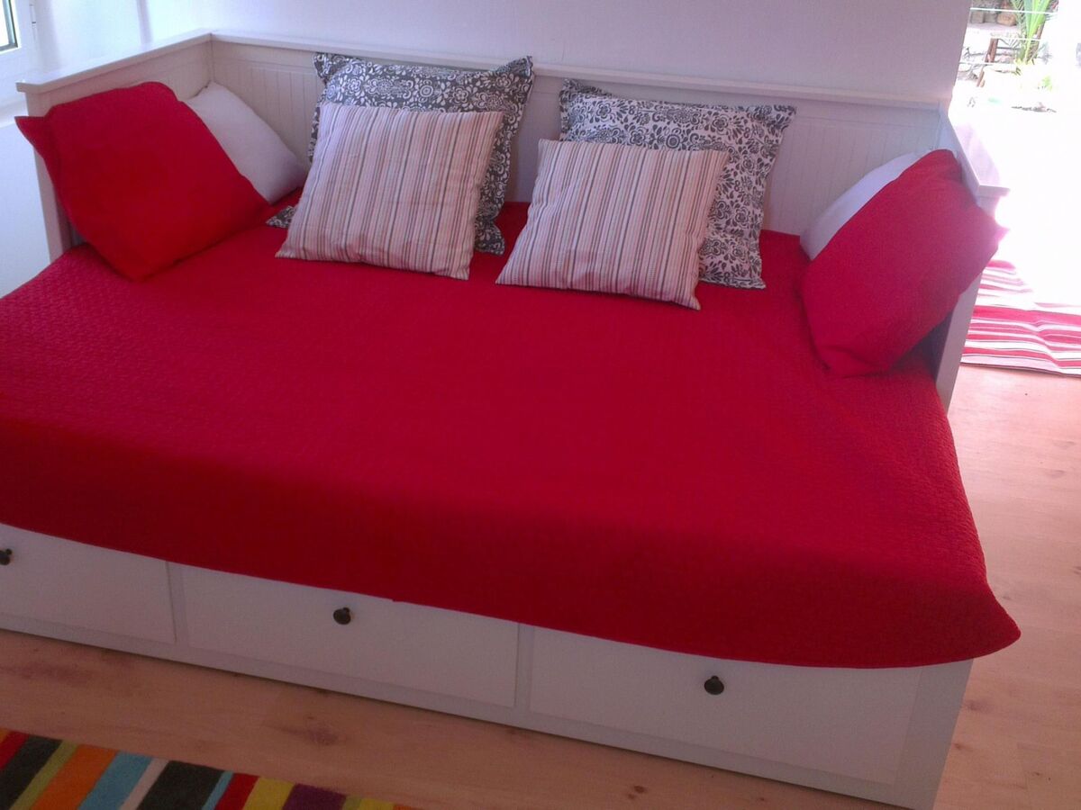 It is basically one big room with a gallery that has a double bed measuring 160 x 200cm.