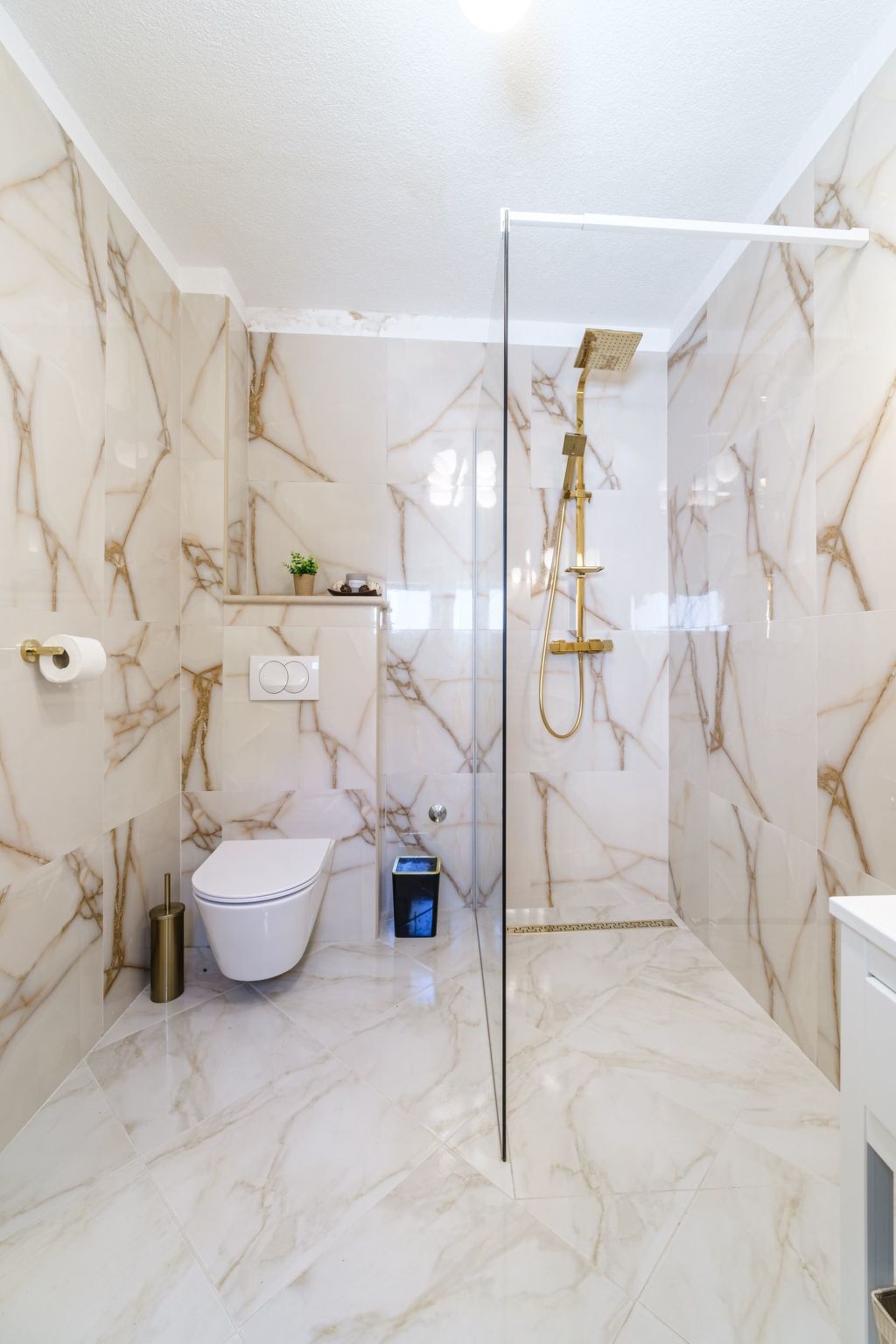 La deuxième salle de bains est équipée d'un lave-linge, ce qui est pratique pour les longs séjours.