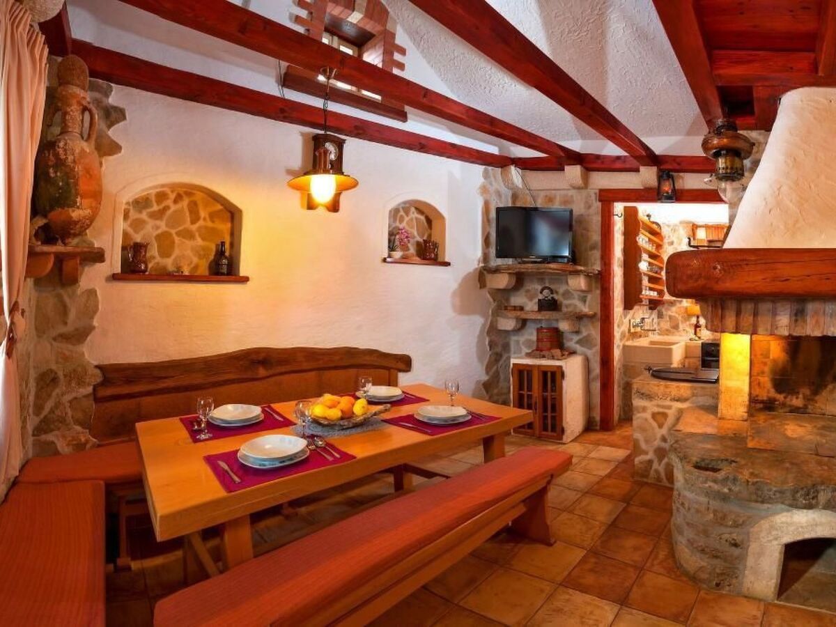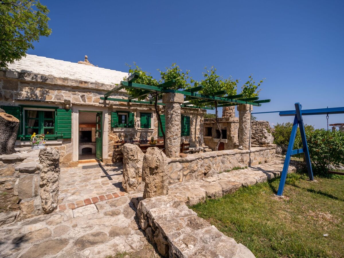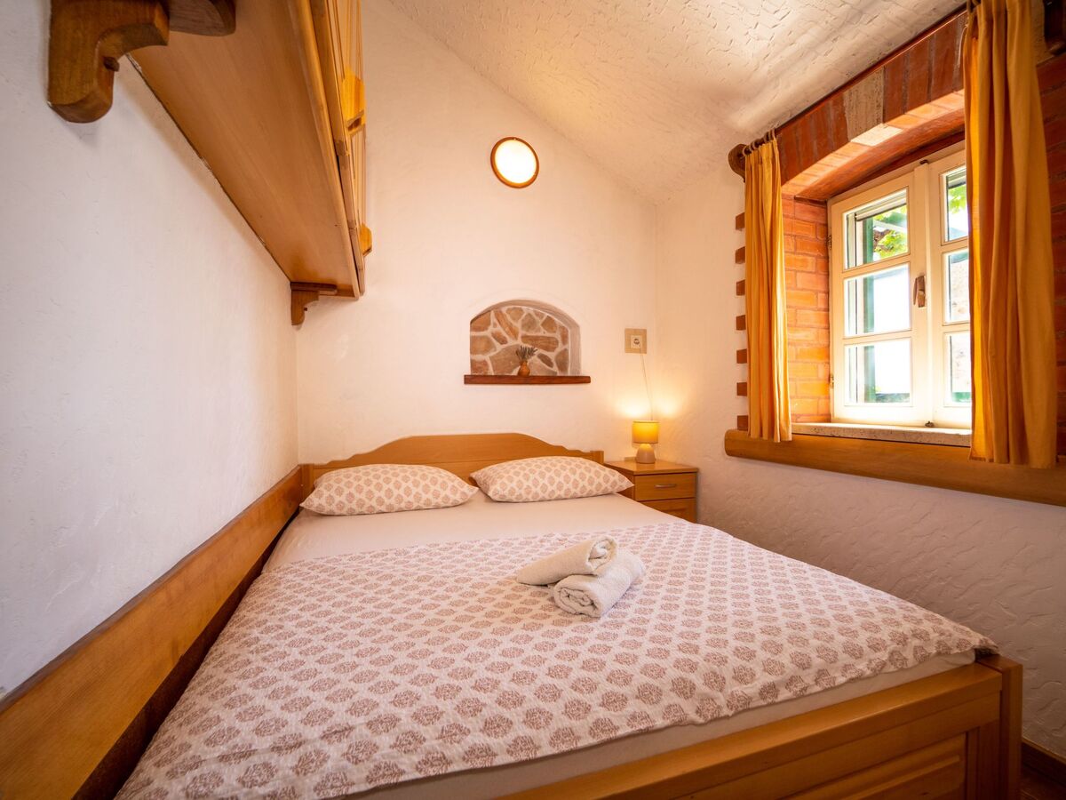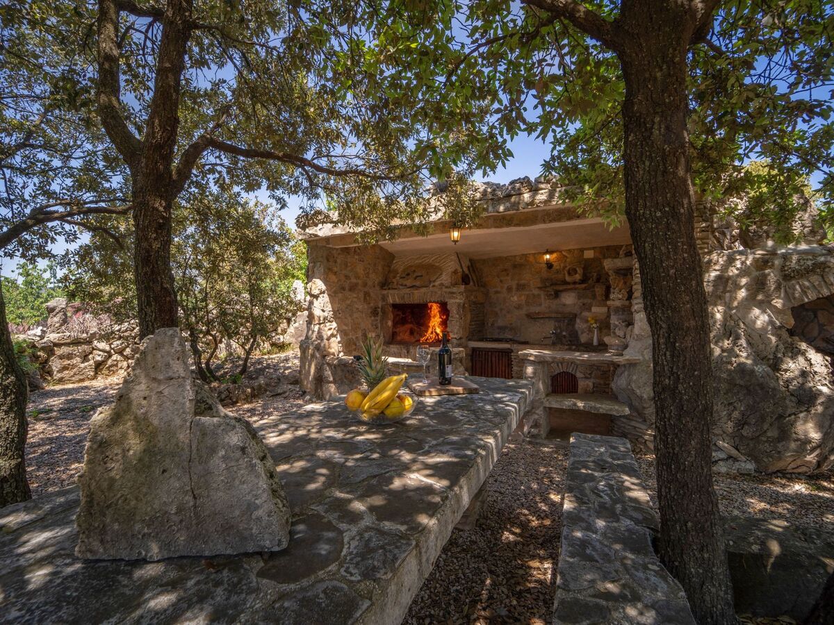 Romantic country house made of natural stone, built in a traditional style, with a spectacular panoramic view of the sea and mountains from the private pool illuminated at night, with an outdoor shower and outdoor kitchen with a grill area, surrounded by a 10,000 m² private property. Ranch Visoka can be easily reached by car, though part of the way is a gravel path. Despite the romantic and secluded location, you are not completely isolated. The owner lives nearby and can be contacted by telephone at any time to assist with any queries. In May, June, September, and October, there is a possibility of renting a second house for two additional people. • electricity and hot water are supplied by its own solar panels • charmingly planted little vegetable garden • secure parking spaces right in front of the villa • outdoor kitchen with a traditional stone grill • a flatscreen TV mounted on the wall with satellite channels • air-conditioned living room • washing machine nearby • kitchens are equipped with a stove, oven, fridge with freezer compartment and plenty of crockery and cutlery • double bed measuring 170 x 200cm • bunk beds 90 x 200cm • plenty of bed linen and towels • a reliable wireless Internet connection can be used free of charge • 1 km away from the nearest beach with crystal clear water • 3 km to the centre of the little harbour town of Sumartin, with a range of shops, colourful markets, and good gastronomy • pet friendly Basic information - Pets allowed: 2 - type of building: Detached house - size of property: 10000 m² - Number of bedrooms: 2 - Number of bathrooms: 2 Top features - WiFi - air conditioning: In part - garden: For sole use - outdoor pool - ㄴ for sole use - ㄴ maximum depth: 150 cm - ㄴ length: 550 cm - ㄴ width: 350 cm - Total of private car parking spaces: 2 - ㄴ of which garage spaces: 1 - ㄴ of which private outdoor parking spaces: 2 Sleeping bedroom 2 - double bed (1.80 m width) bedroom 4 - bunk bed Bathroom bathroom 2 - shower bathroom 4 - shower Cooking/Living - fridge/freezer: deep freezer, fridge - oven - fireplace Entertainment - TV: TV Utility - fan: 1 Outside area - veranda - grill/barbecue: grill/barbecue - outside shower Surroundings - view: mountain, sea/lake, garden, forrest, lawn - directly at the edge of the wood - Nearest town centre: 2,5 km - Grocery store: 2,5 km - restaurant: 2,0 km - beach: 1,6 km - sea: 1,0 km Distinctive features - farm house holiday - finca - vineyard - Agritourism - Suitable for fishing