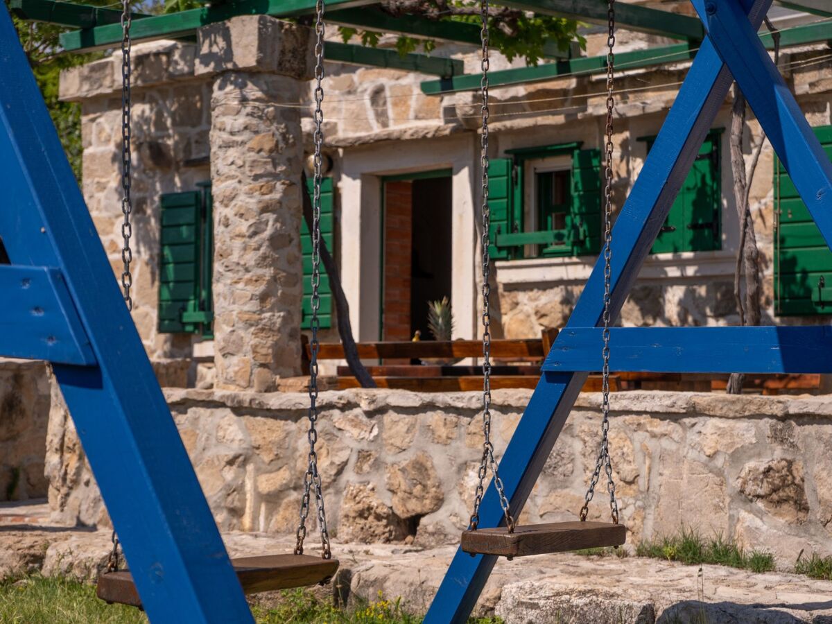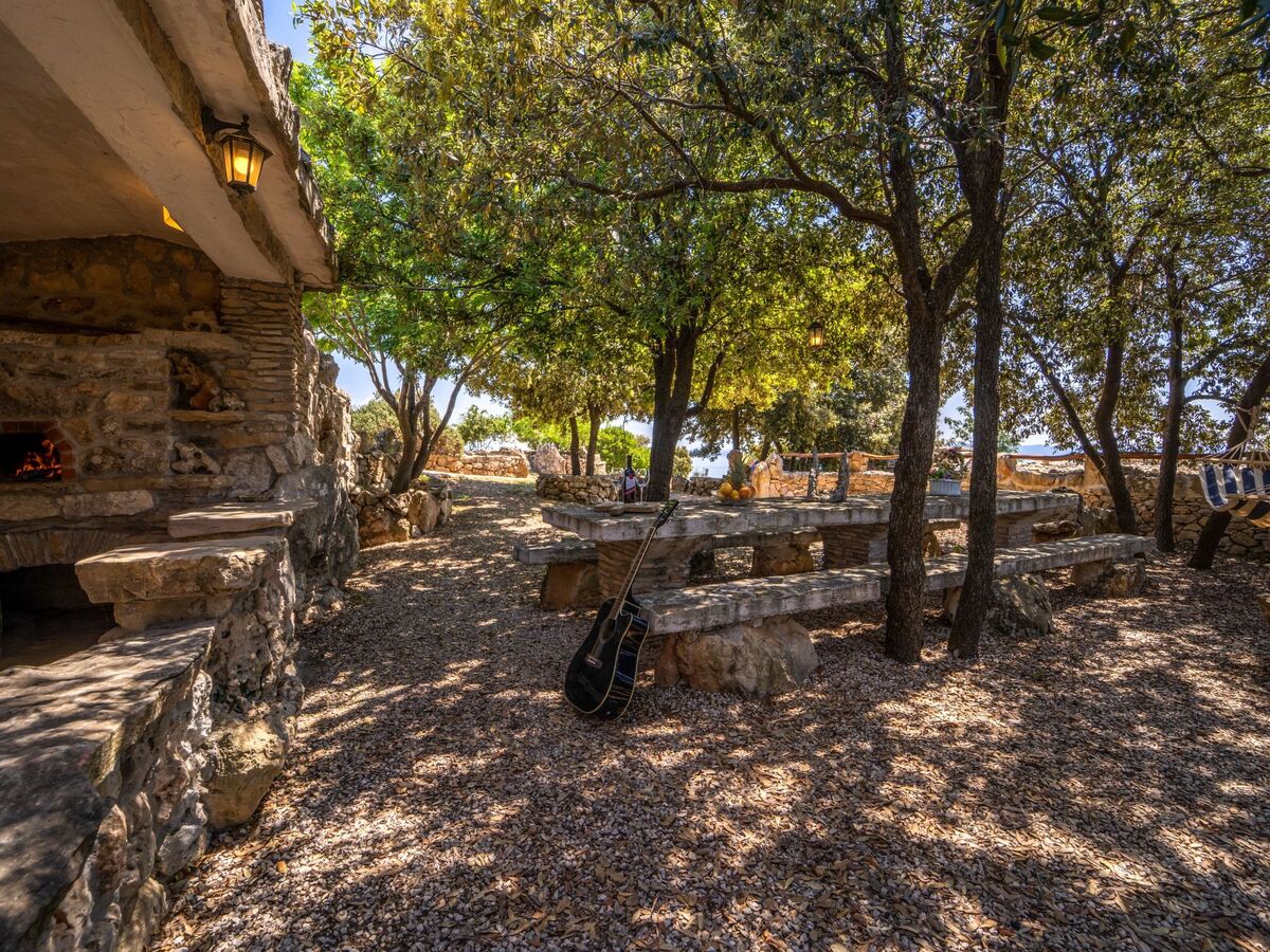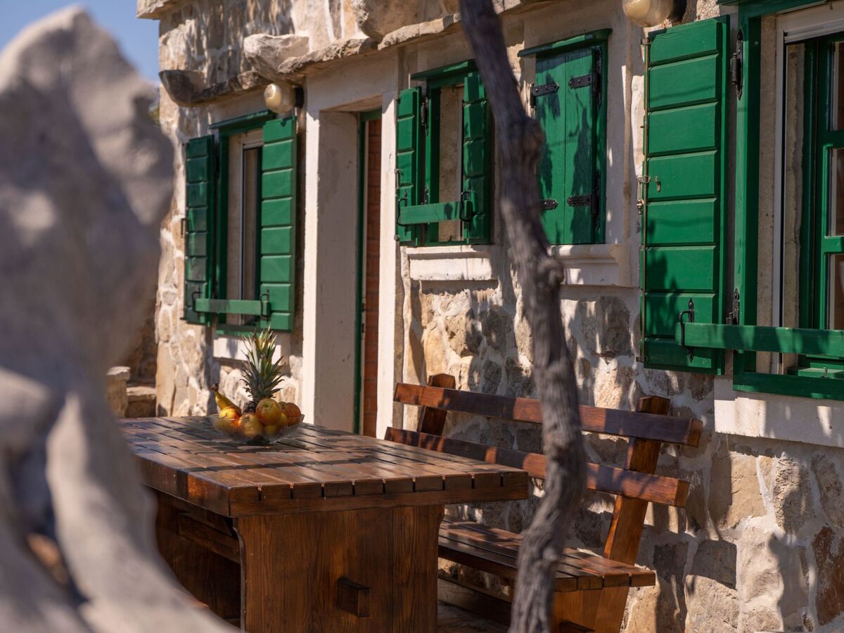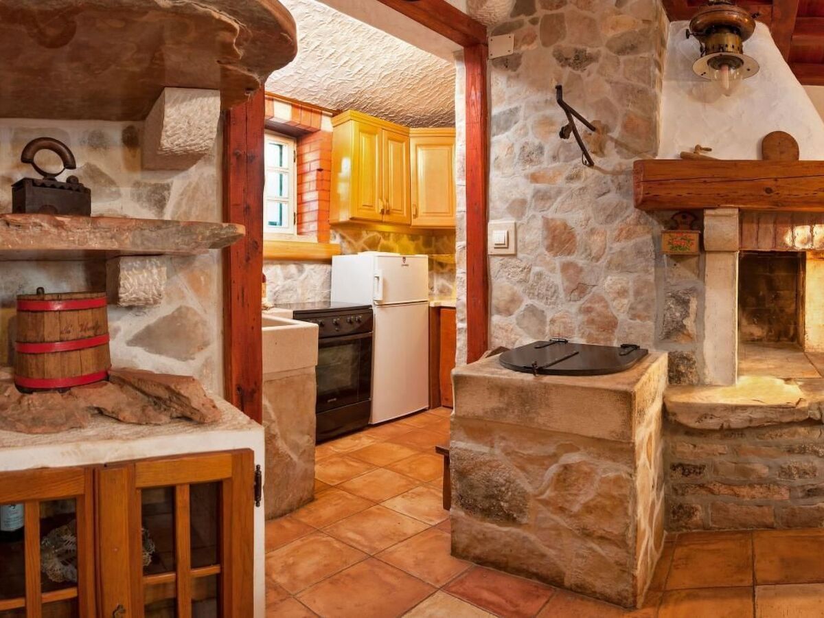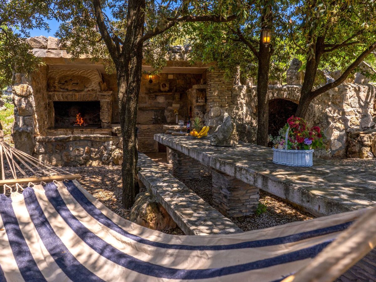 Romantic country house made of natural stone, built in a traditional style, with a spectacular panoramic view of the sea and mountains from the private pool illuminated at night, with an outdoor shower and outdoor kitchen with a grill area, surrounded by a 10,000 m² private property. Ranch Visoka can be easily reached by car, though part of the way is a gravel path. Despite the romantic and secluded location, you are not completely isolated. The owner lives nearby and can be contacted by telephone at any time to assist with any queries. In May, June, September, and October, there is a possibility of renting a second house for two additional people. • electricity and hot water are supplied by its own solar panels • charmingly planted little vegetable garden • secure parking spaces right in front of the villa • outdoor kitchen with a traditional stone grill • a flatscreen TV mounted on the wall with satellite channels • air-conditioned living room • washing machine nearby • kitchens are equipped with a stove, oven, fridge with freezer compartment and plenty of crockery and cutlery • double bed measuring 170 x 200cm • bunk beds 90 x 200cm • plenty of bed linen and towels • a reliable wireless Internet connection can be used free of charge • 1 km away from the nearest beach with crystal clear water • 3 km to the centre of the little harbour town of Sumartin, with a range of shops, colourful markets, and good gastronomy • pet friendly Basic information - Pets allowed: 2 - type of building: Detached house - size of property: 10000 m² - Number of bedrooms: 2 - Number of bathrooms: 2 Top features - WiFi - air conditioning: In part - garden: For sole use - outdoor pool - ㄴ for sole use - ㄴ maximum depth: 150 cm - ㄴ length: 550 cm - ㄴ width: 350 cm - Total of private car parking spaces: 2 - ㄴ of which garage spaces: 1 - ㄴ of which private outdoor parking spaces: 2 Sleeping bedroom 2 - double bed (1.80 m width) bedroom 4 - bunk bed Bathroom bathroom 2 - shower bathroom 4 - shower Cooking/Living - fridge/freezer: deep freezer, fridge - oven - fireplace Entertainment - TV: TV Utility - fan: 1 Outside area - veranda - grill/barbecue: grill/barbecue - outside shower Surroundings - view: mountain, sea/lake, garden, forrest, lawn - directly at the edge of the wood - Nearest town centre: 2,5 km - Grocery store: 2,5 km - restaurant: 2,0 km - beach: 1,6 km - sea: 1,0 km Distinctive features - farm house holiday - finca - vineyard - Agritourism - Suitable for fishing