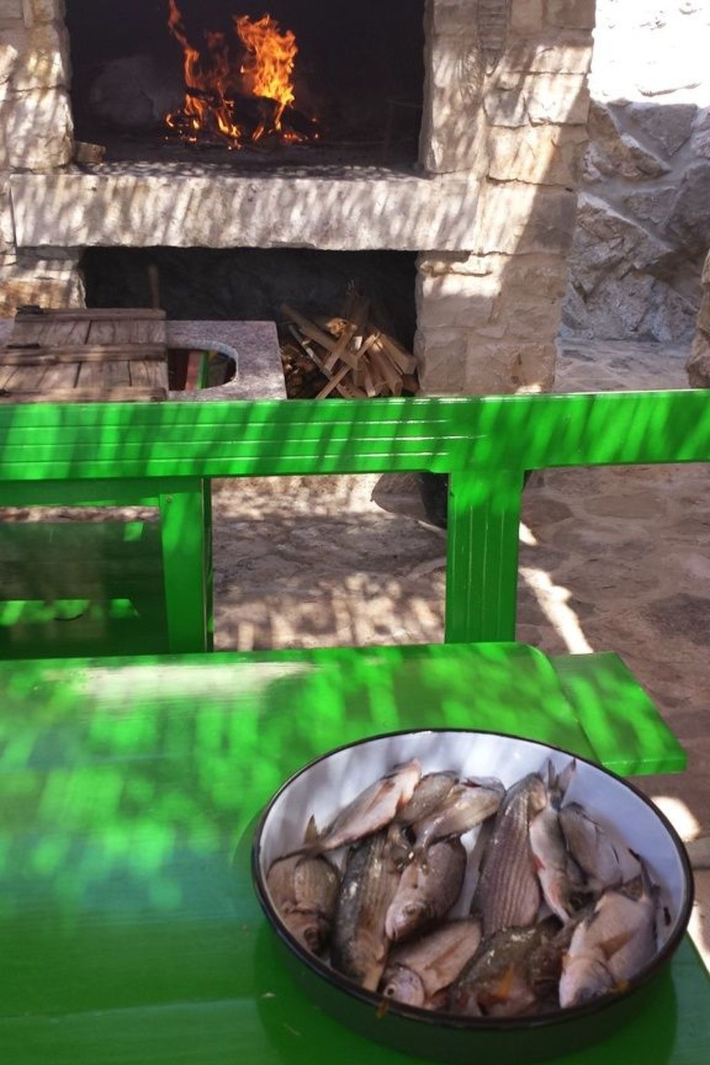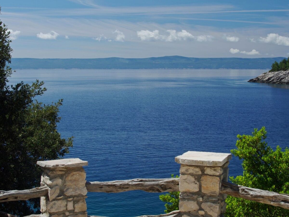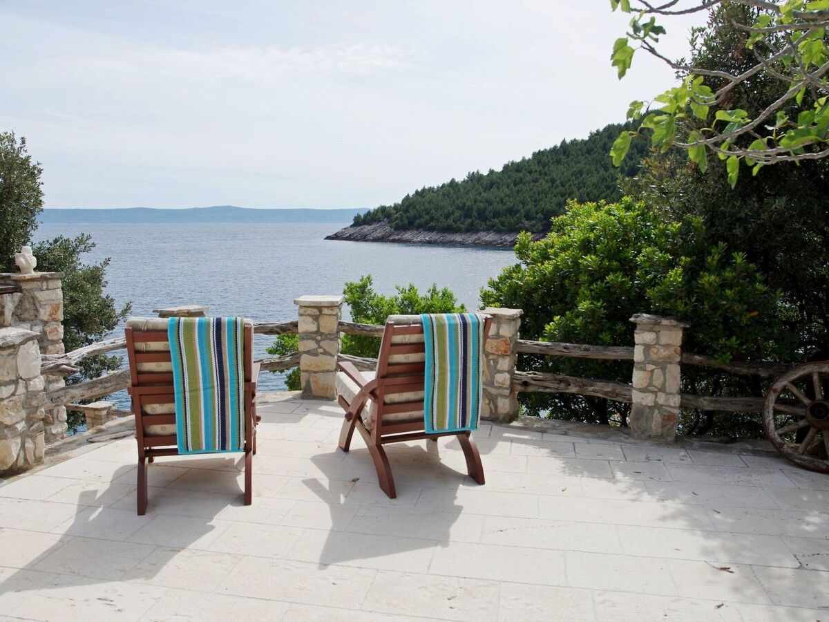 Le terrain de 5000 m² est situé dans une baie en bord de mer et dispose de plusieurs terrasses avec vue sur la mer, ainsi que d'un barbecue (bois de chauffage fourni gratuitement) et d'une table à manger avec banc.