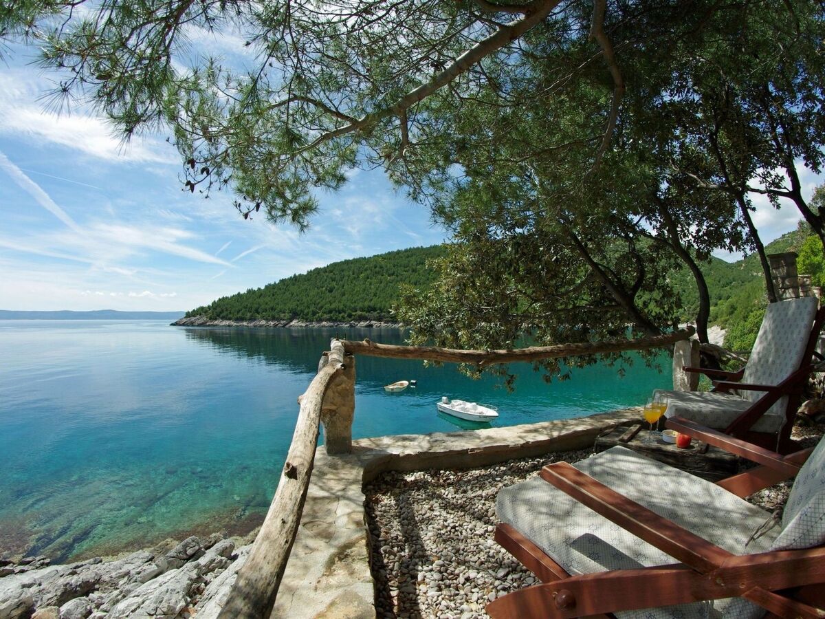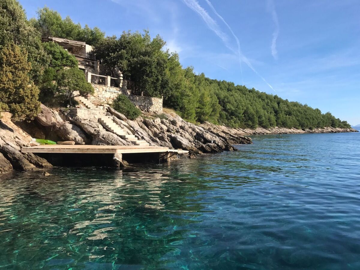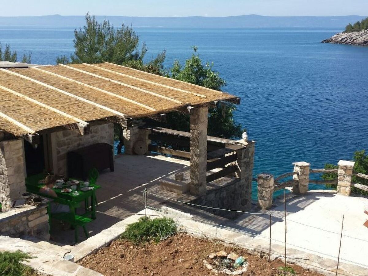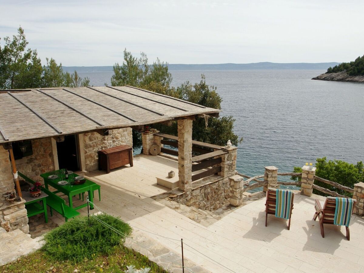Cette maison individuelle en pierre naturelle se trouve en situation isolée sur l'île de Brac, dans une baie à dix mètres de la mer, avec sa propre jetée et un ponton en bois pour la baignade.