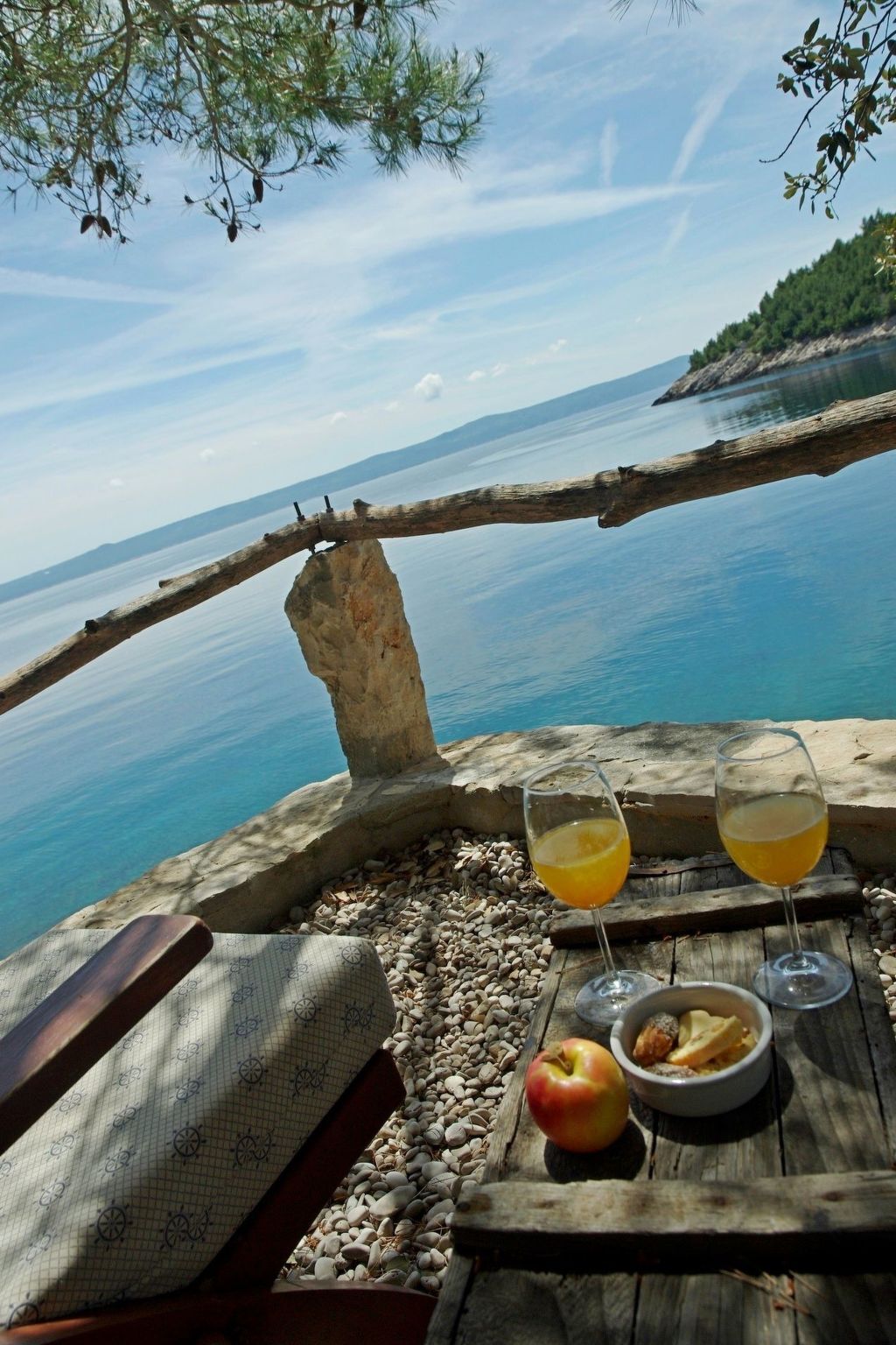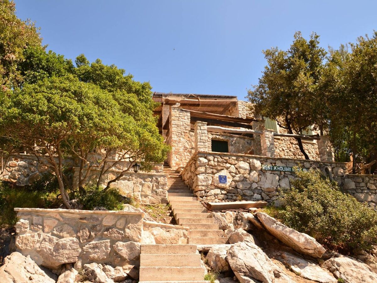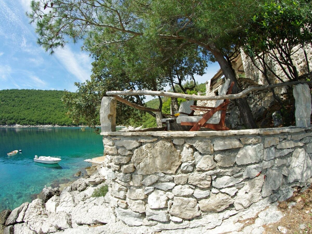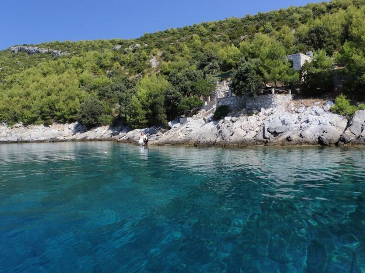 Cette maison individuelle en pierre naturelle se trouve en situation isolée sur l'île de Brac, dans une baie à dix mètres de la mer, avec sa propre jetée et un ponton en bois pour la baignade.