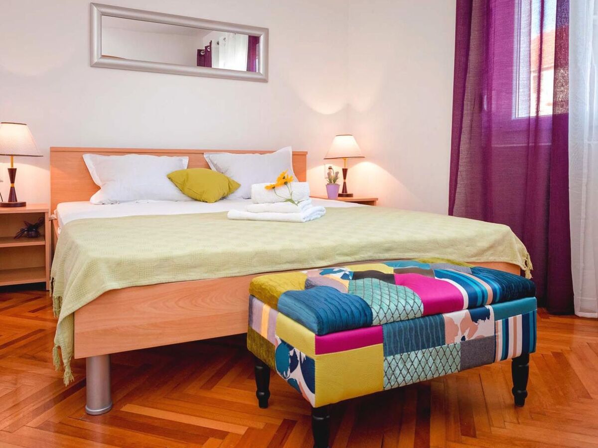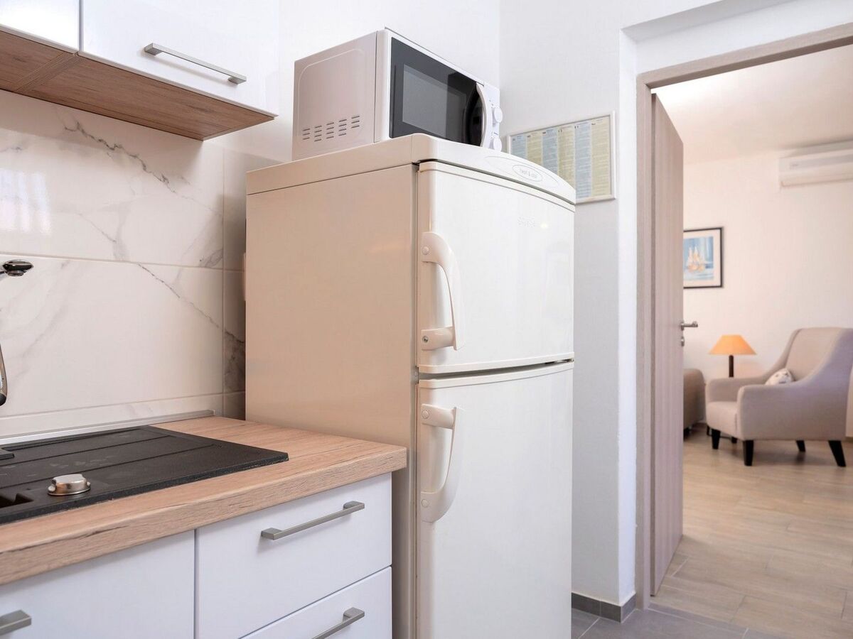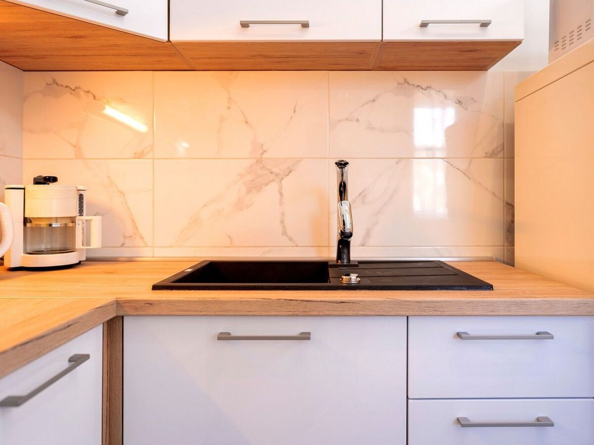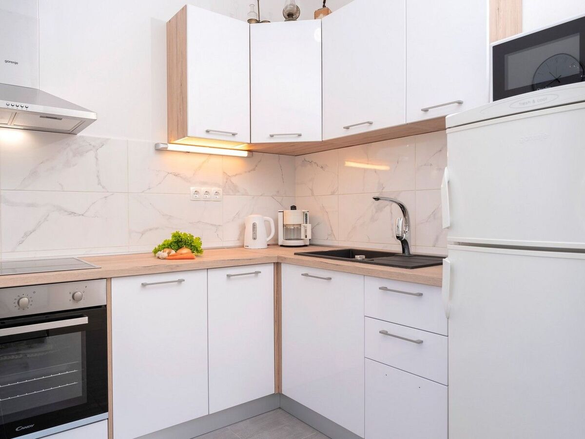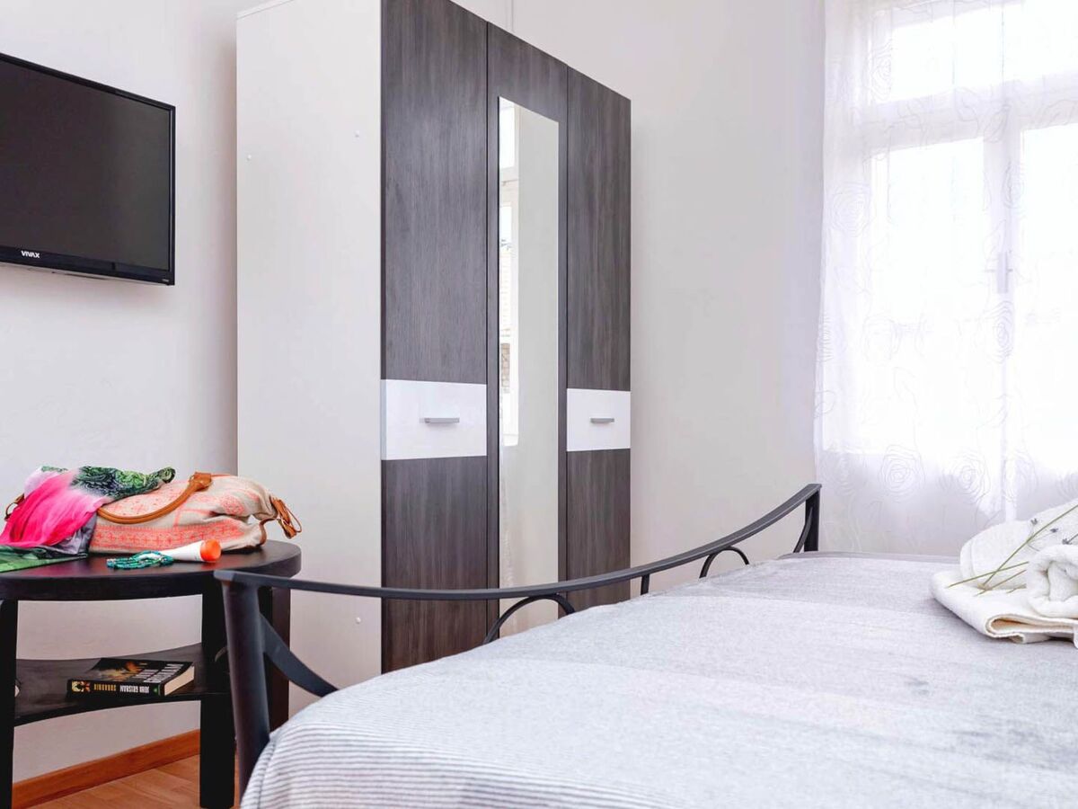 One bedroom has access to a beautiful balcony equipped with a table and chairs.Holiday house Sunshine is equipped with air conditioning, SAT-TV, wi-fi internet, baby bed, iron and ironing board, stove, hood, microwave, refrigerator with freezer, electric kettle, coffee maker, toaster, washing machine and swings for children.