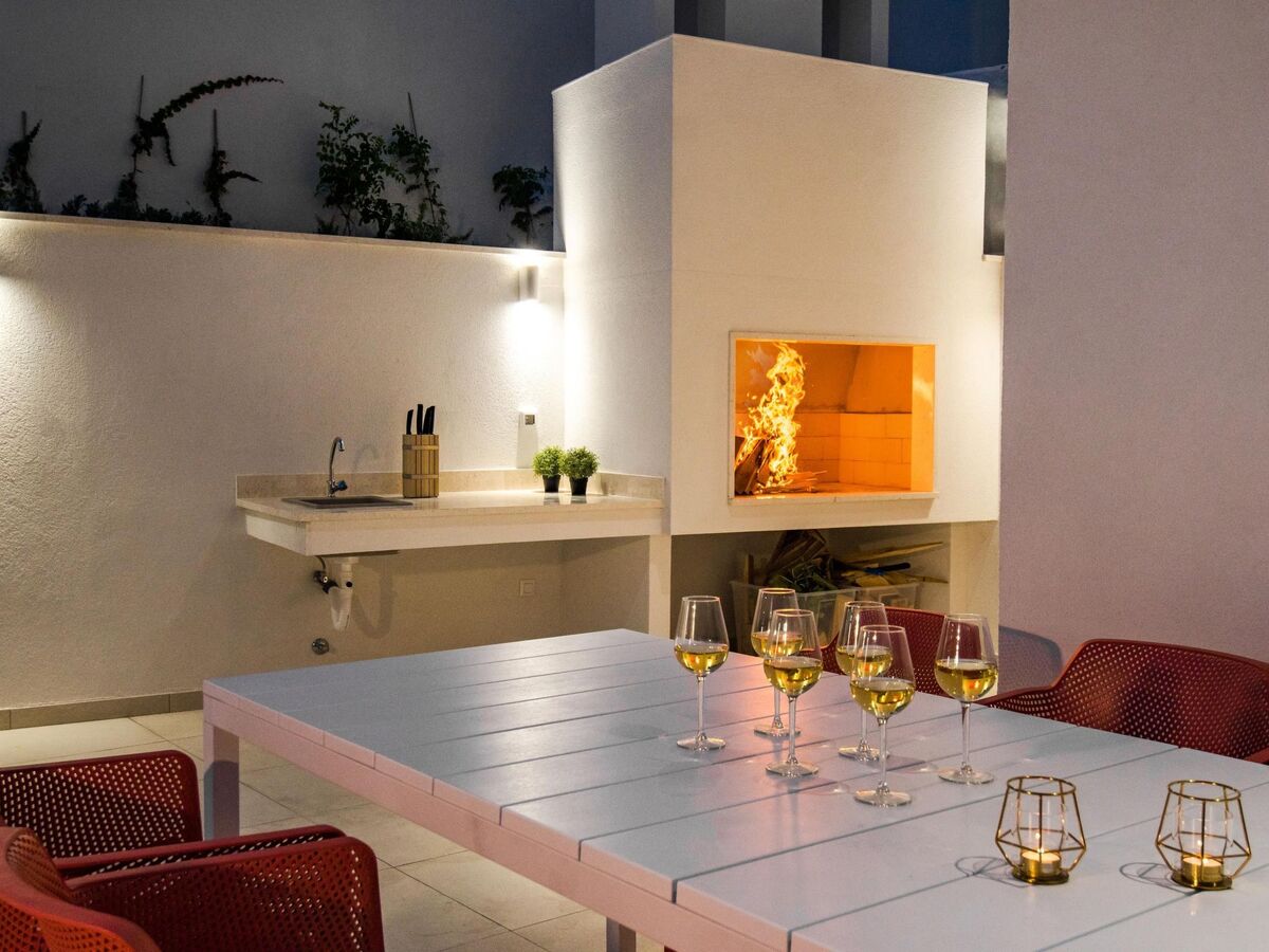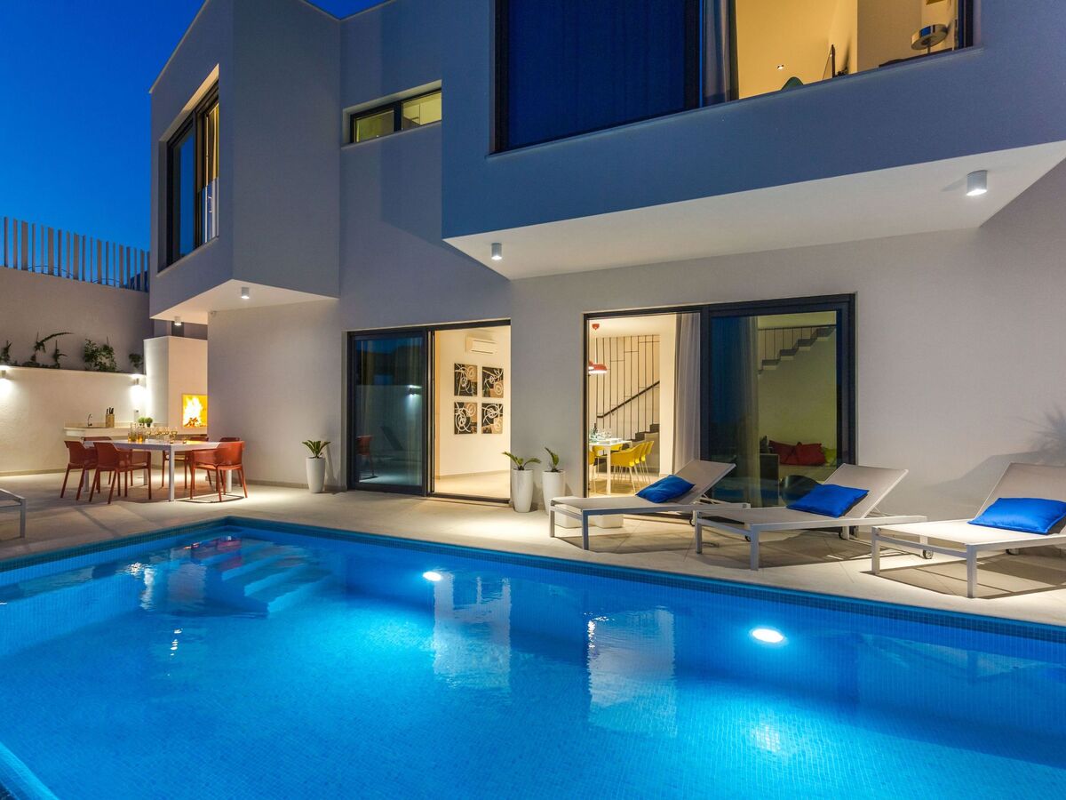 The modern and luxurious, two-storey holiday villa consist of three bedrooms with separate bathrooms, a spacious living room, a terrace with a fireplace and outdoor infinity swimming pool.