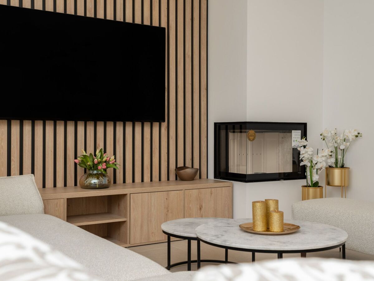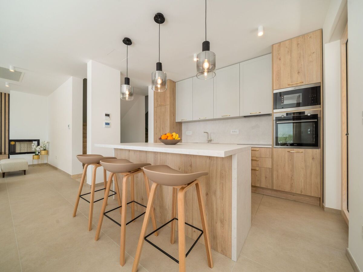 Inside, stylish furniture complements the fully equipped kitchen and open-plan living areas.
