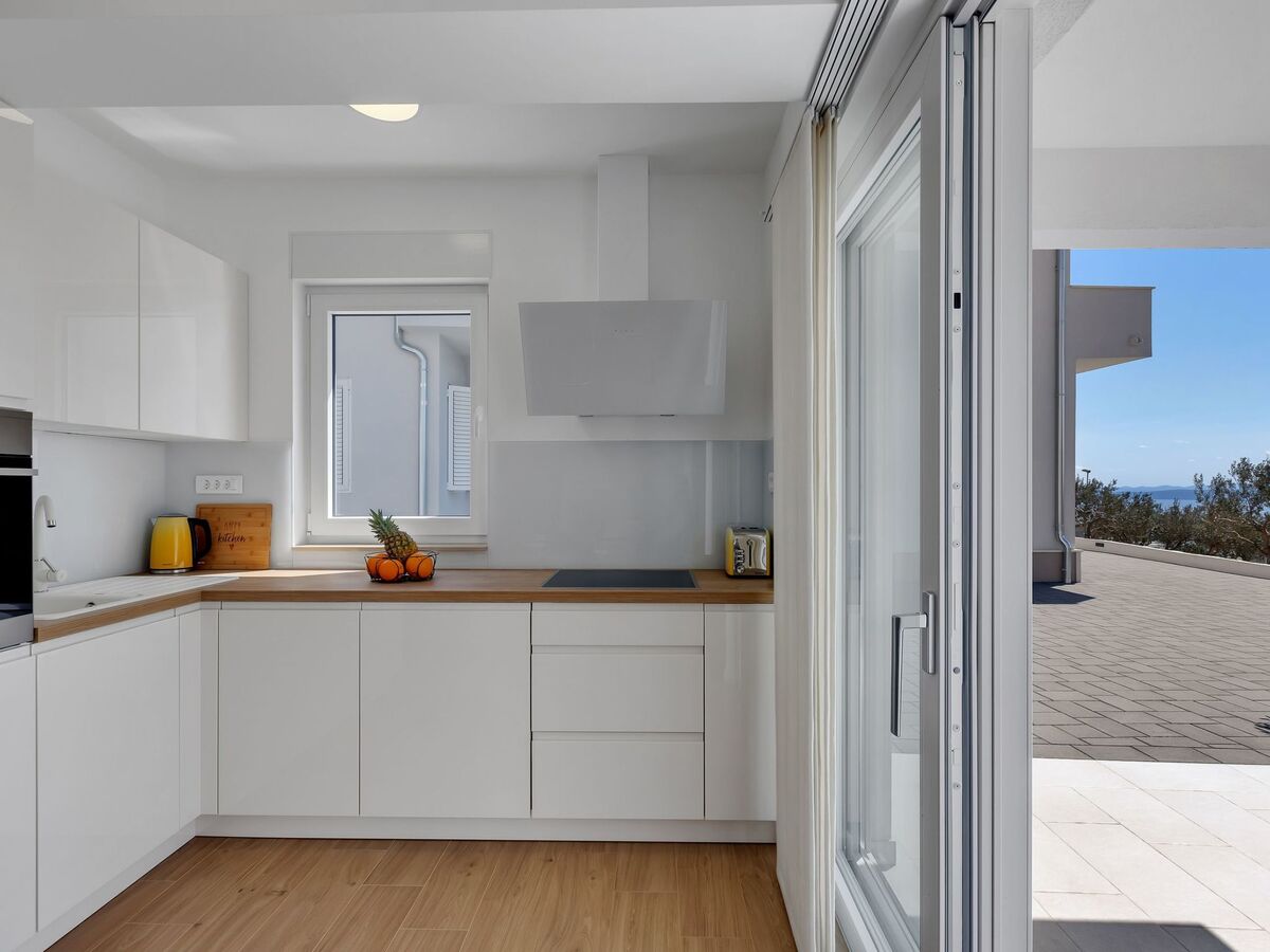 Modern holiday home with sea view is located above the town of Makarska in a quiet location.