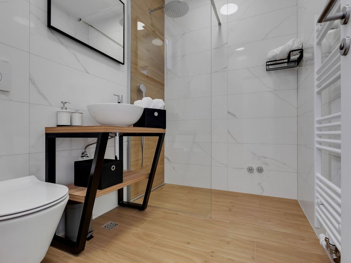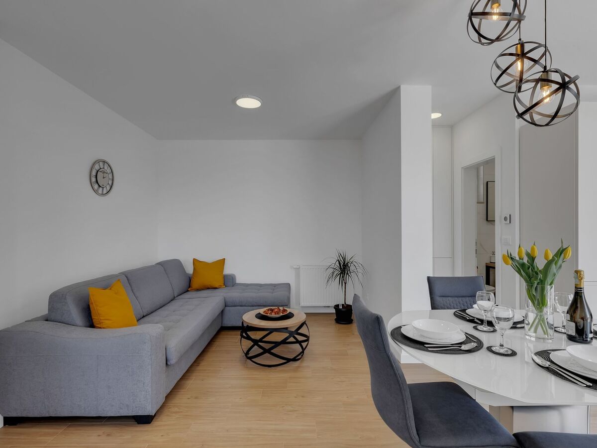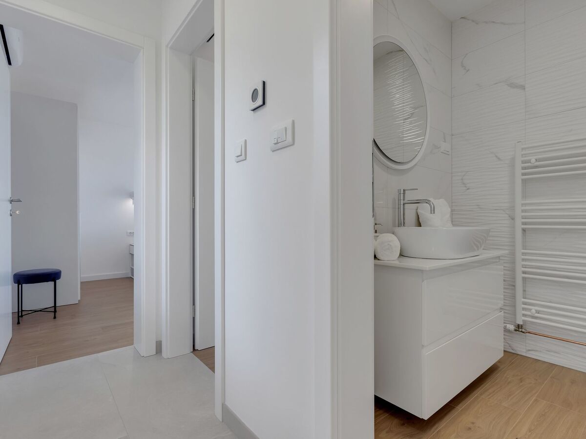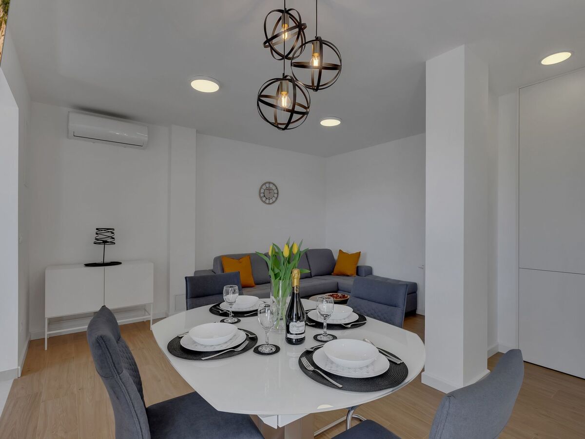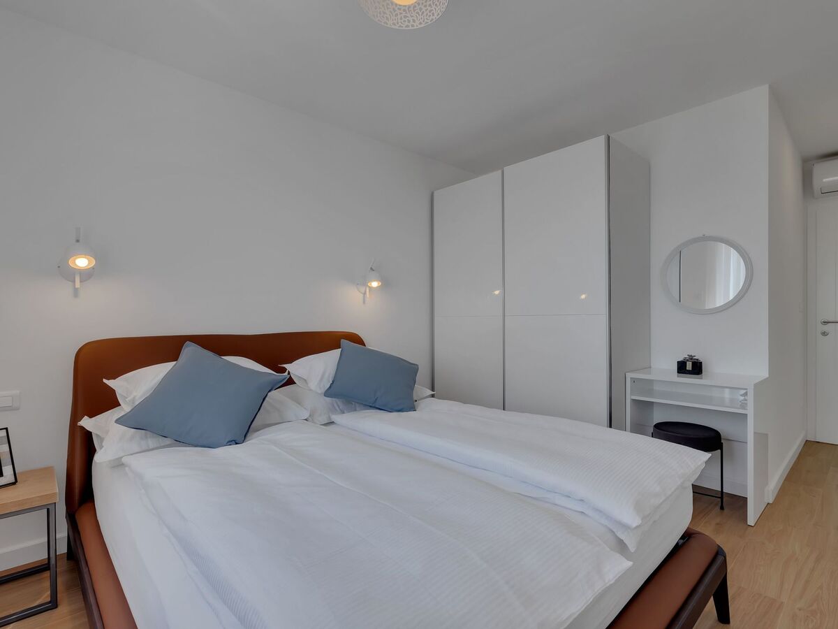 The holiday home has a spacious living room with air conditioning, TV/SAT, balcony with sea view, an open kitchen, fully equipped, central heating is also available.